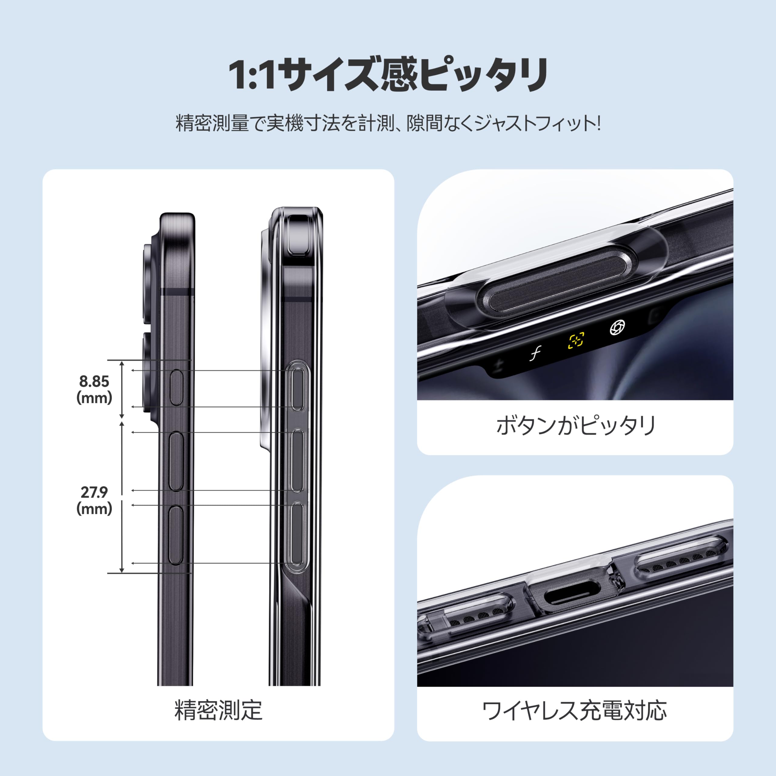 * 【完璧なフィット感・超精密設計】精密機械測定で厳密に寸法を測定し、誤差ゼロの1:1密着度を実現。隙間なく本体にぴったりフィットし、全てのボタンも完璧に合わせて、優れた押し心地を提供します。ケースを装着したままでもスムーズな操作が可能。精細な設計と精密な加工、厳選素材のハイブリッド構造で、驚異的な装着感を実現しました。対応機種:アイホン17ケース