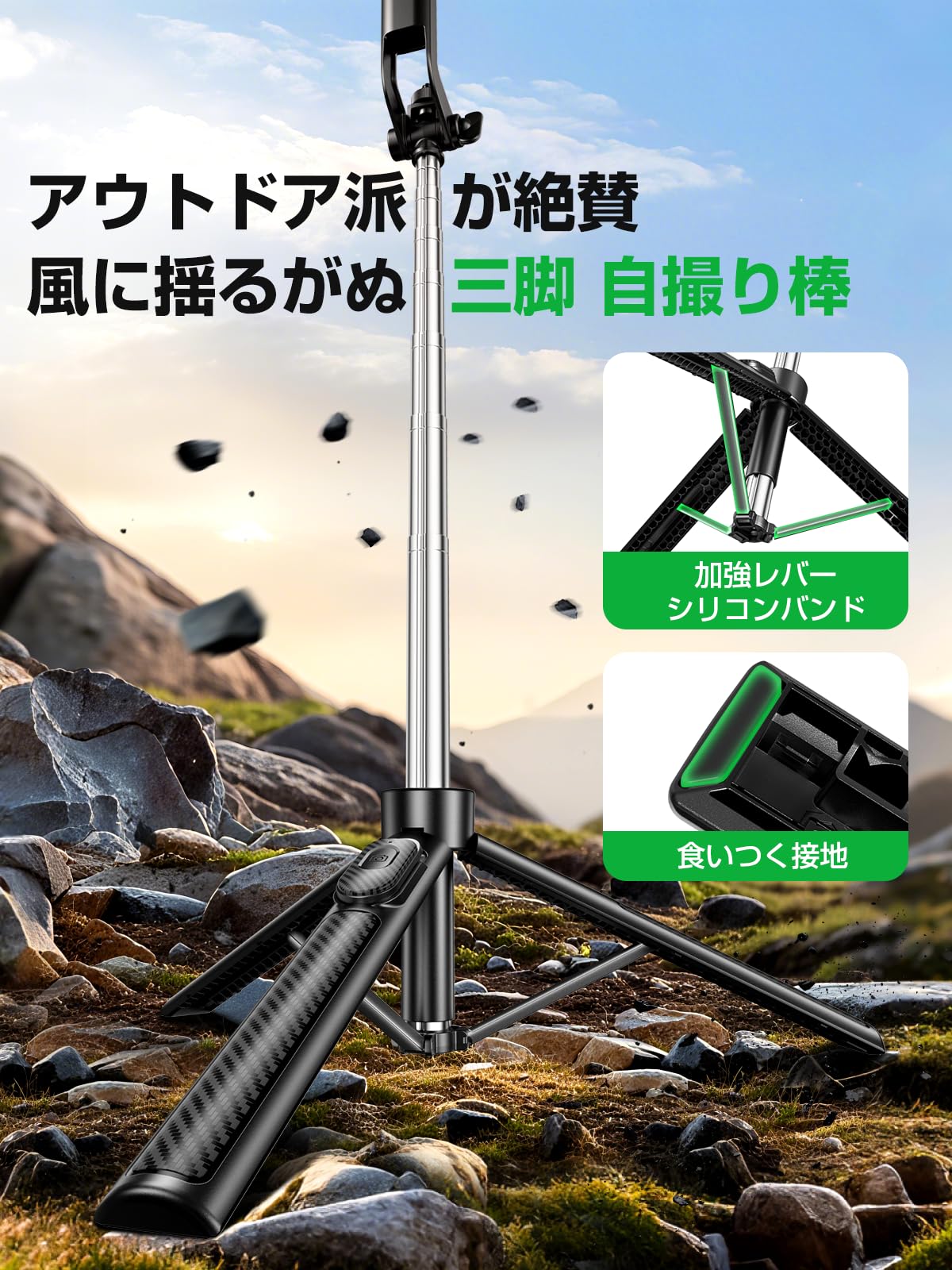 * 【驚異の安定力!揺れない、倒れない】MACOOは常に革新的なデザインを追求しながらも、自撮り棒 三脚の「安定性」において一切の妥協を許しません。今回のマグネット式自撮り棒では、安定性に優れた傘型構造の三脚と高強度アルミ合金素材を組み合わせることで、圧倒的なダブル安定構造を実現。最大20kgの耐荷重を誇り、iPhone Pro Maxシリーズなどの大型スマホでもしっかり支えます。さらに、スマホスタンド 三脚の脚部には防滑シリコンパッドを採用し、風や振動にも強く、屋内外問わずブレのない美しい映像を実現。