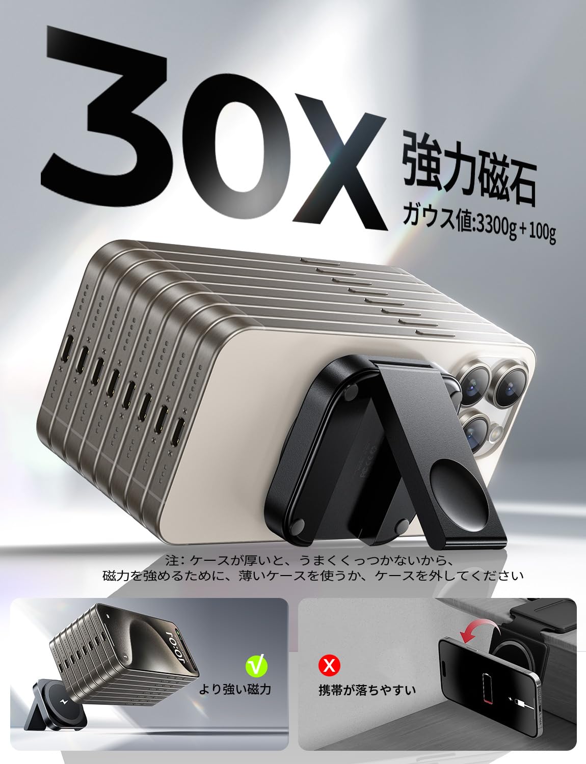 * 【折り畳み式マルチ機能マグセーフ充電スタンド】軽量設計でワイヤレス充電 + スマホスタンド 2 役,180° 角度調節で動画視聴 / キッチンレシピ確認便利。折畳後 61.5×61.5×13.7mm 超薄コンパクト,ポケット収納で旅行出張も持ち運び簡単。付属 1.5M 編組ケーブル + 6 ヶ月品質保証,充電不具合は随時対応。
