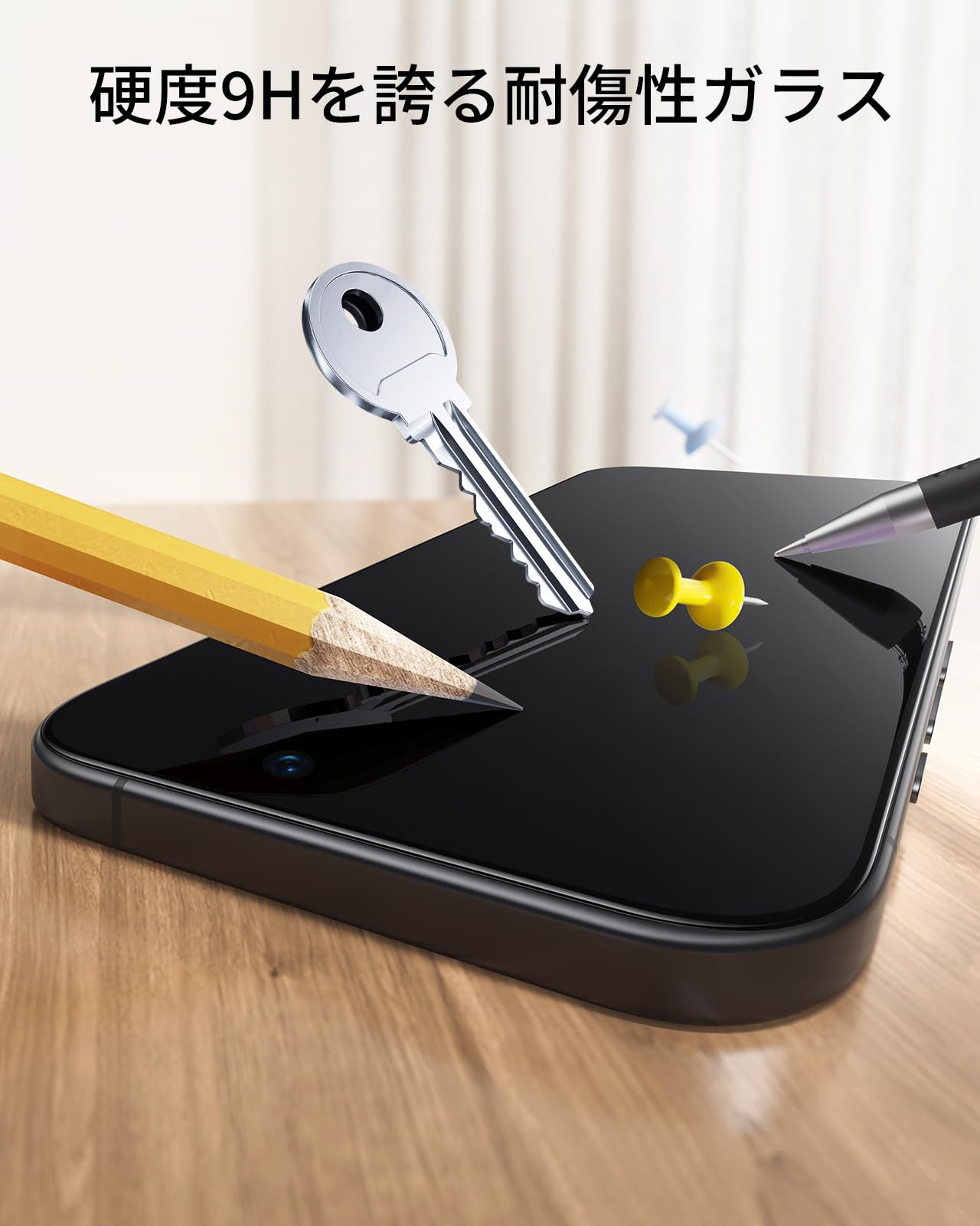 * [MIL-STD-810H 米軍MIL規格保護] 超硬質のいphone17/いphone16pro ガラスフィルムは日常のテストに耐えます。アスファルトへの落下からハンドバッグ内の鍵との衝突まで。特殊なエッジが端の破損を防ぎ、軍事基準でテストされています