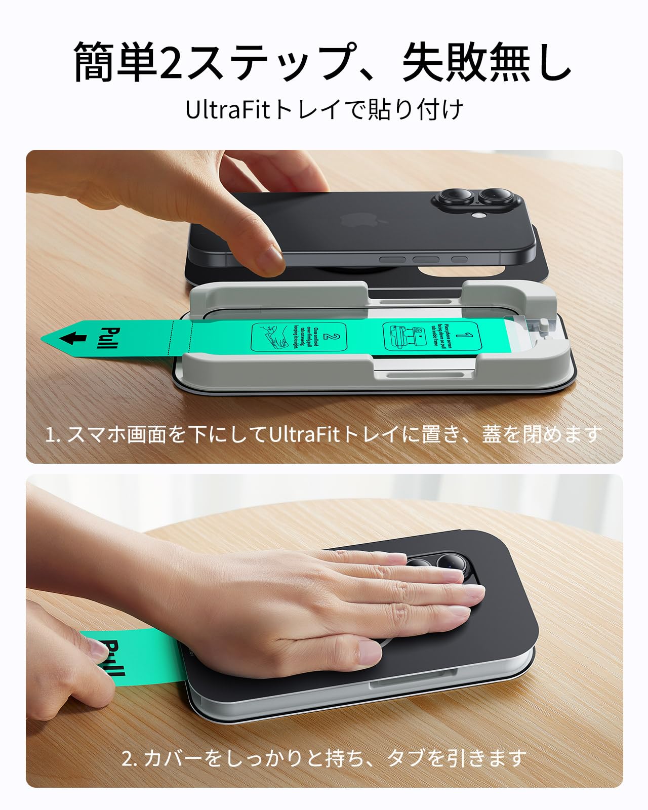 * [ESR16年の技術力で市場革新:誰でも3秒で貼付] iPhone 17/iPhone 16 Pro ガラスフィルムの革命的な取り付けシステムです。統合されたガイドレールがフィルムを正確に位置決めし、埃や気泡が埃除去フィルムを剥がした直後に即座に排出されます。プロフェッショナルな取り付けツールを使用することで、iPhone 17/iPhone 16 Pro 保護フィルムを短時間で取り付け可能です。初めてのユーザーでも完璧な結果を得られます