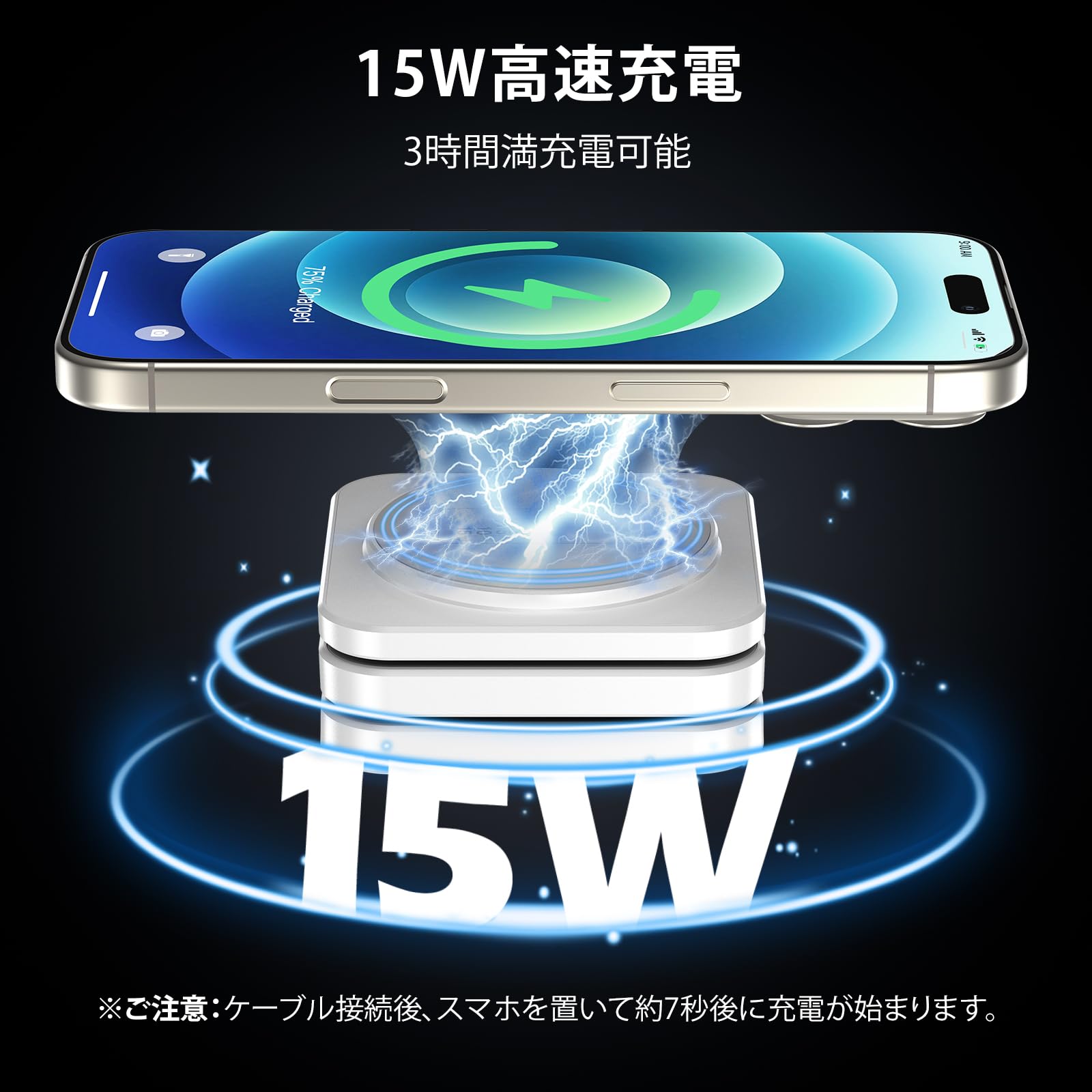 Yamisan ワイヤレス充電器 3-in-1 マグネット式 折り畳み式 Qi対応 軽量 持ち運び便利 Mag-Safe対応 コンパクト充電器 テレワーク用品/出張/旅行用