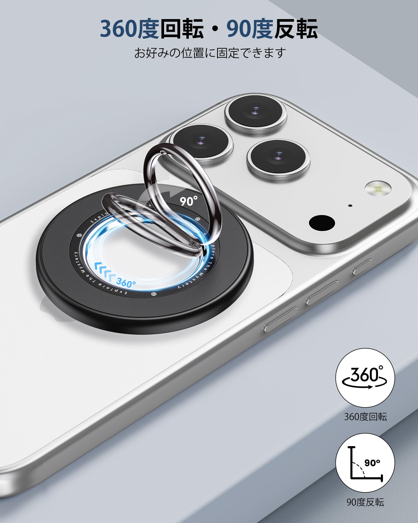 【両面マグネット・超强磁力】SODI スマホリング MagSafe対応 360度回転・90度反転 マグセーフ MagSafe リング バンカーリング マグネット式 磁石 簡単着脱 スマホ落下防止 iPhone 17/16/15/14/13/12 Pro Max&Androidシリーズなどに対応 車載ホルダー テーブル 金属リング付き ブラック