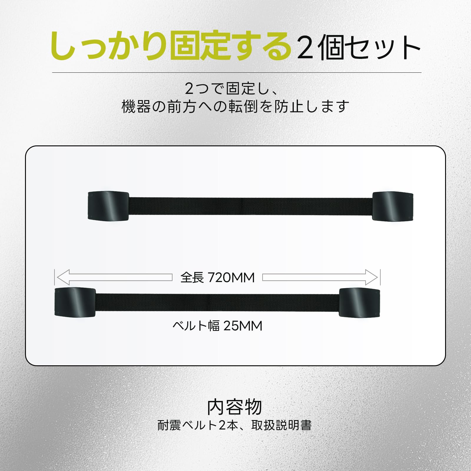 * 【耐震ベルト・プレミアム】震度7相当の振動試験をクリアし、耐震力はトップクラス。テレビ/液晶モニター裏面のVESA穴を利用して、転倒を防止します。地震などの転倒を防ぎ、ケガを予防する安全対策アイテムです。