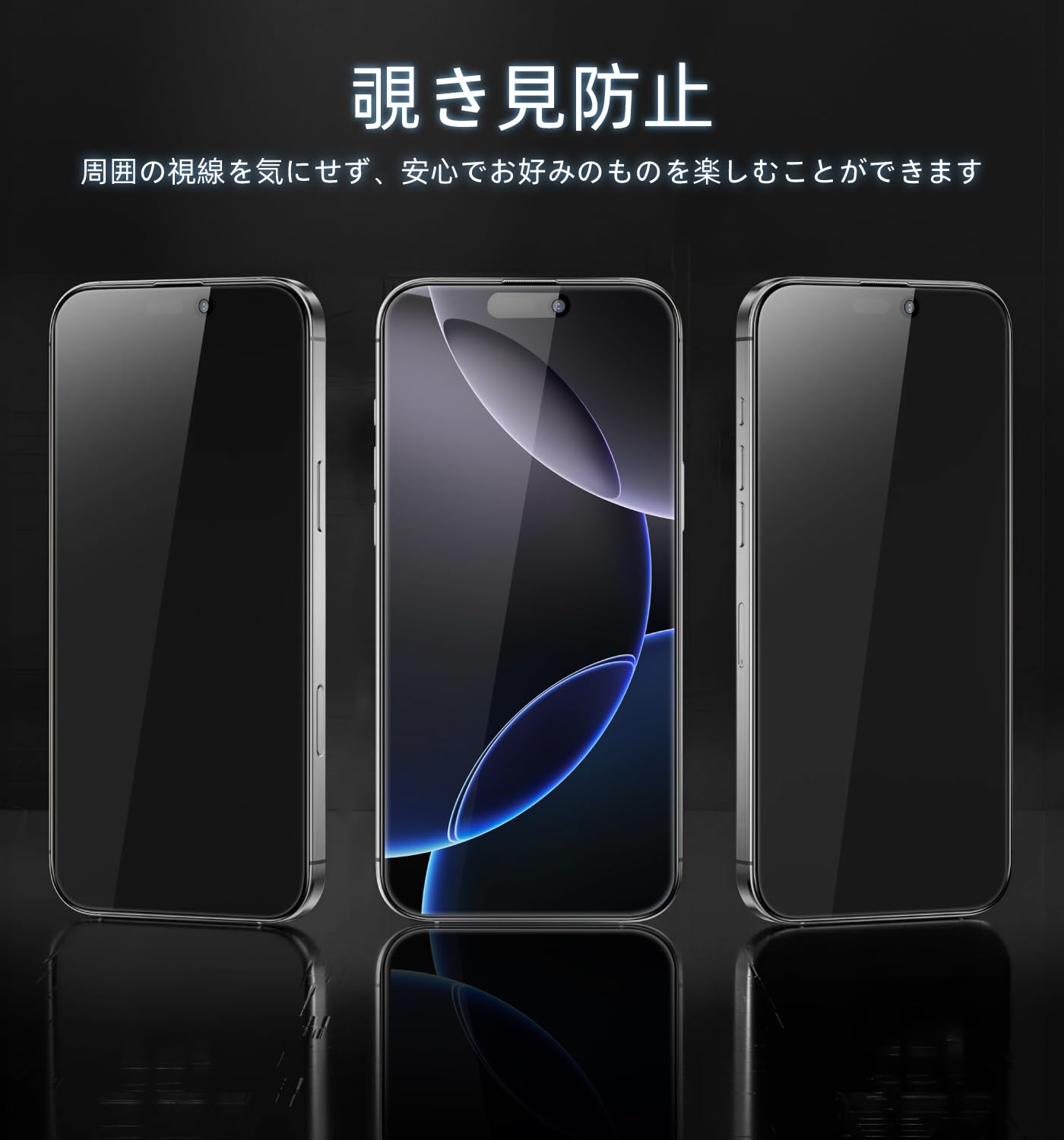 * 【もう失敗はしない】本製品はiPhone 15 Proに対応するプライバシーフィルム2枚セットです。百万以上の欧米ユーザーのフィドバックを集めて日々改善したガイド枠は、3歩だけで保護フィルムを貼り付けます。そのうえ、自動ホコリ取りデザインだけでなく、ガイド枠のスロープデザインで、空気を順序に取り除くことができて、初心者でも気泡レスのまま綺麗に貼れます。