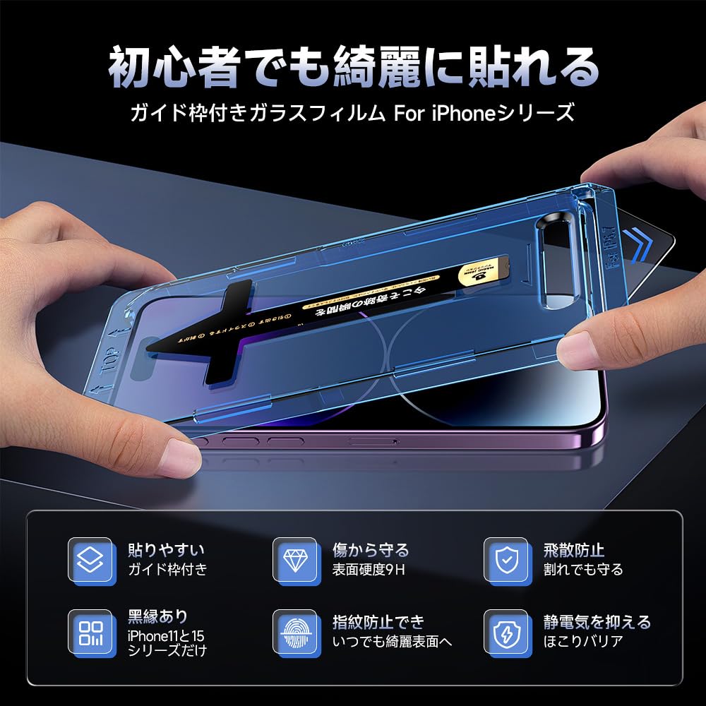 * 【もう失敗はしない】本製品はiPhone14/13/13Pro/16eに対応するプライバシーフィルム2枚セットです。百万以上の欧米ユーザーのフィドバックを集めて日々改善したガイド枠は、3歩だけで保護フィルムを貼り付けます。そのうえ、自動ホコリ取りデザインだけでなく、ガイド枠のスロープデザインで、空気を順序に取り除くことができて、初心者でも気泡レスのまま綺麗に貼れます。
