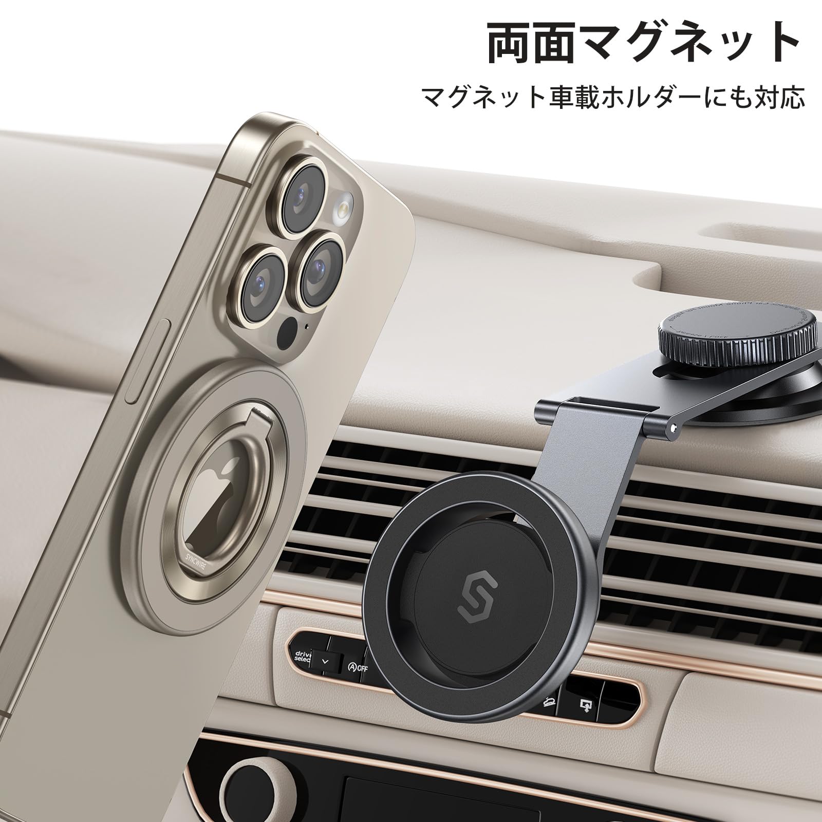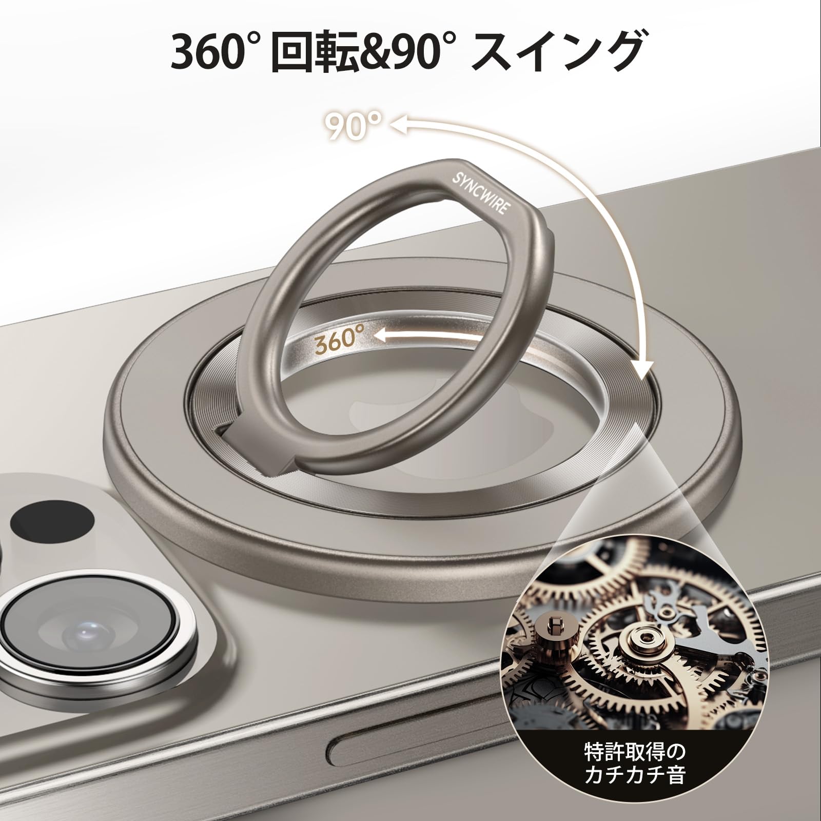 【ナチュラルチタニウムカラー】Syncwire MagSafe リング - 両面マグネット スマホリング 360度回転 超强磁力 マグセーフ リング マグネット バンカーリング 薄型 角度調節可能 簡単着脱 iPhone 15 Pro/15 Pro Max/ 15 /14 Pro Max/14 Pro/14/13/12 などに対応 アンドロイド 全機種対応 2枚メタルリング付