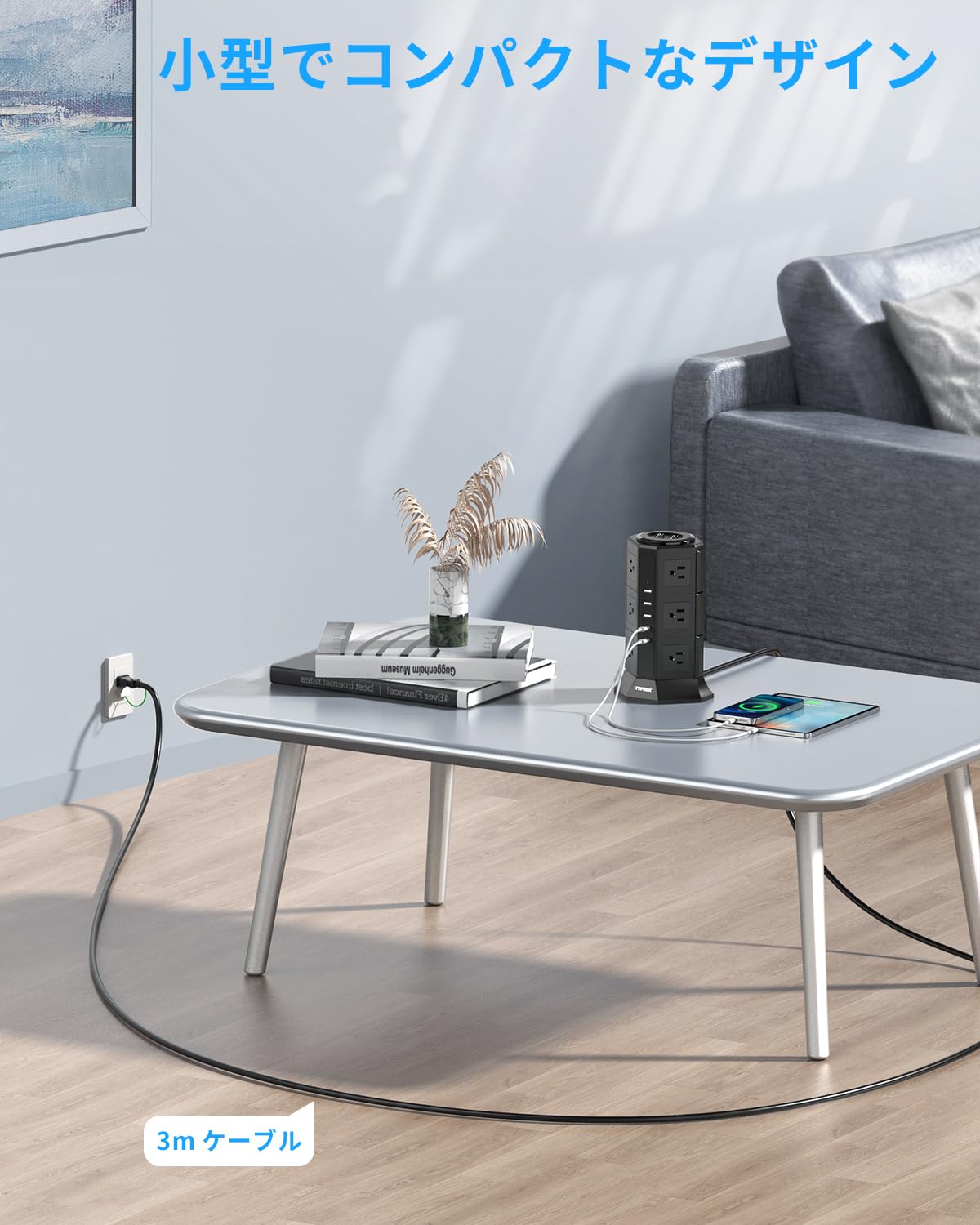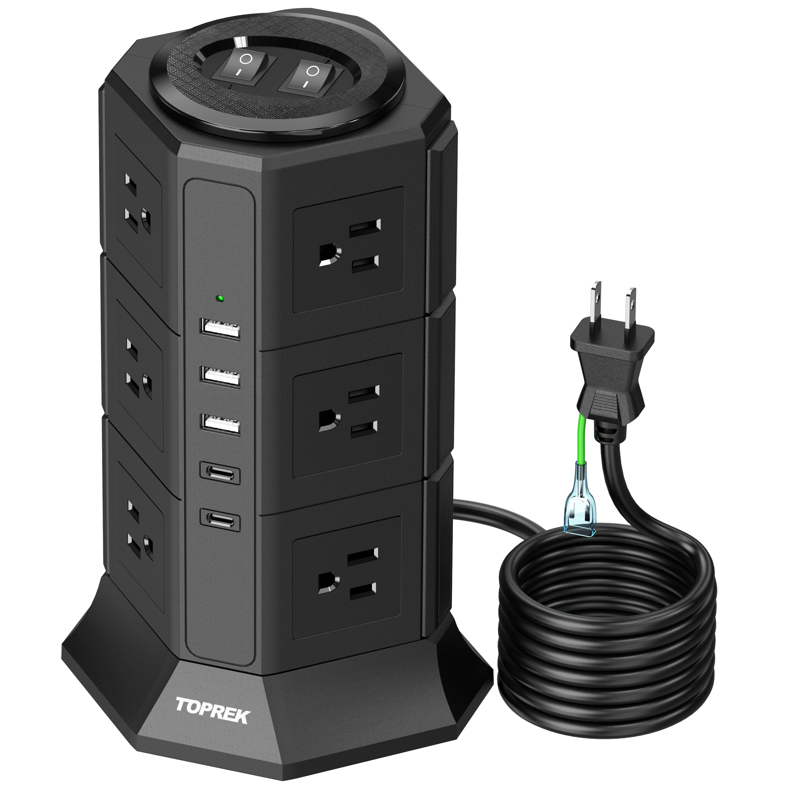 TOPREK 縦型コンセント 電源タップ 延長コード 3m タワー式 電源タップ usb付き コンセントタップ 12個AC口 5個USBポート Type-C付 ダブルスイッチ付き 過負荷保護 オフィス・会議用 自宅用 12A/1500W