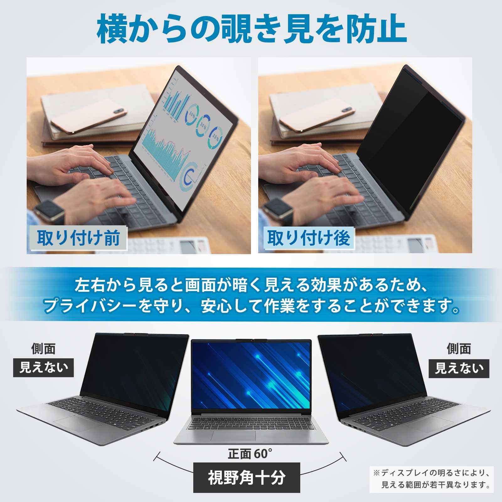 ■ プライバシーを保護:正面からの視認性はそのままに、横からの覗き見を防ぎます。
