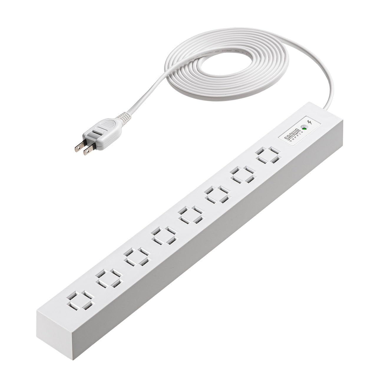 サンワダイレクト 電源タップ AC 8個口 3m 雷ガード 絶縁キャップ スイングプラグ 延長コード スリム ホワイト 700-TAP083-3W