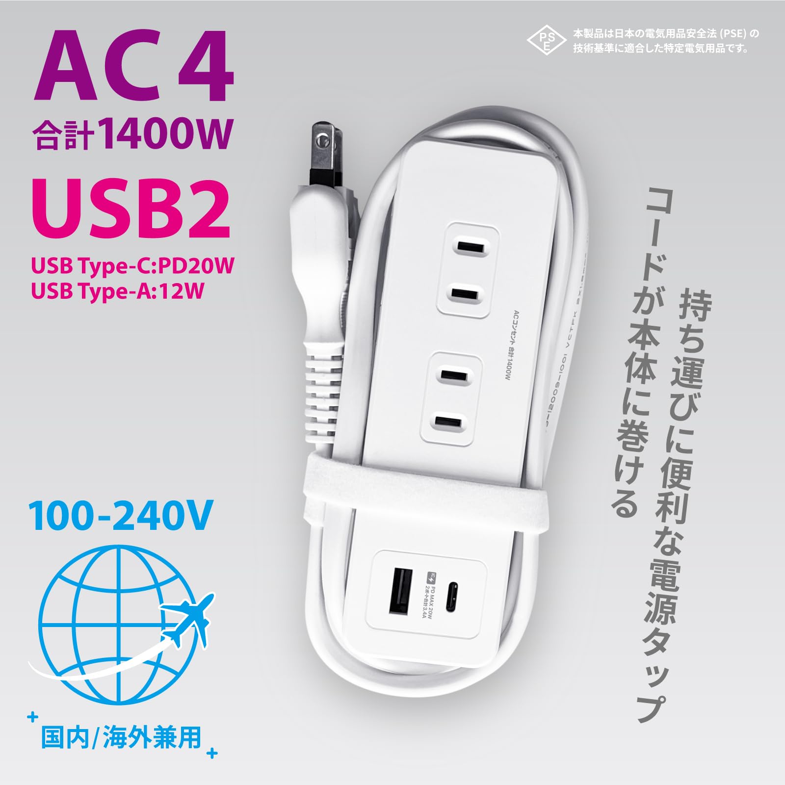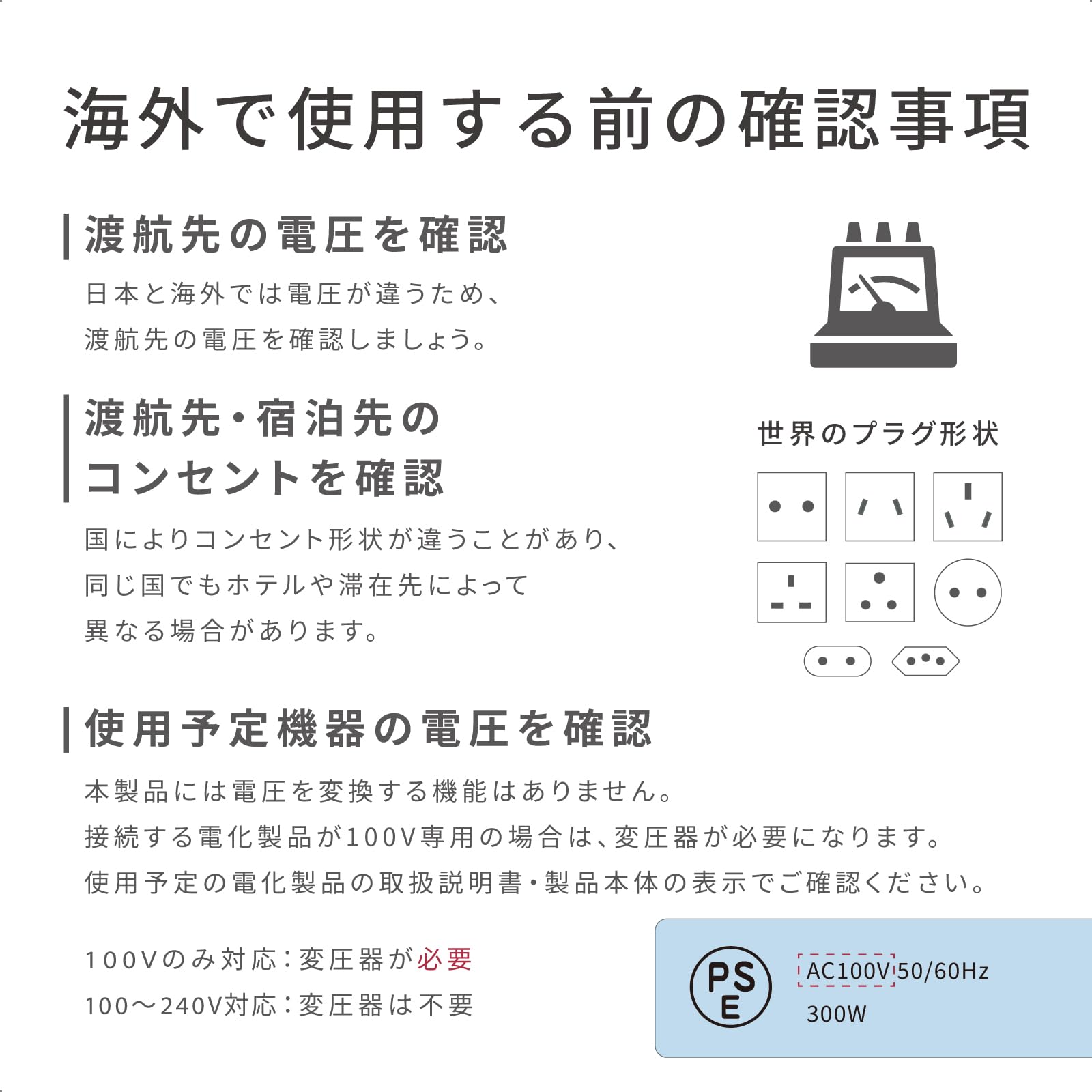 ■ 100V~240V対応なので国内でも海外でも使用可能。