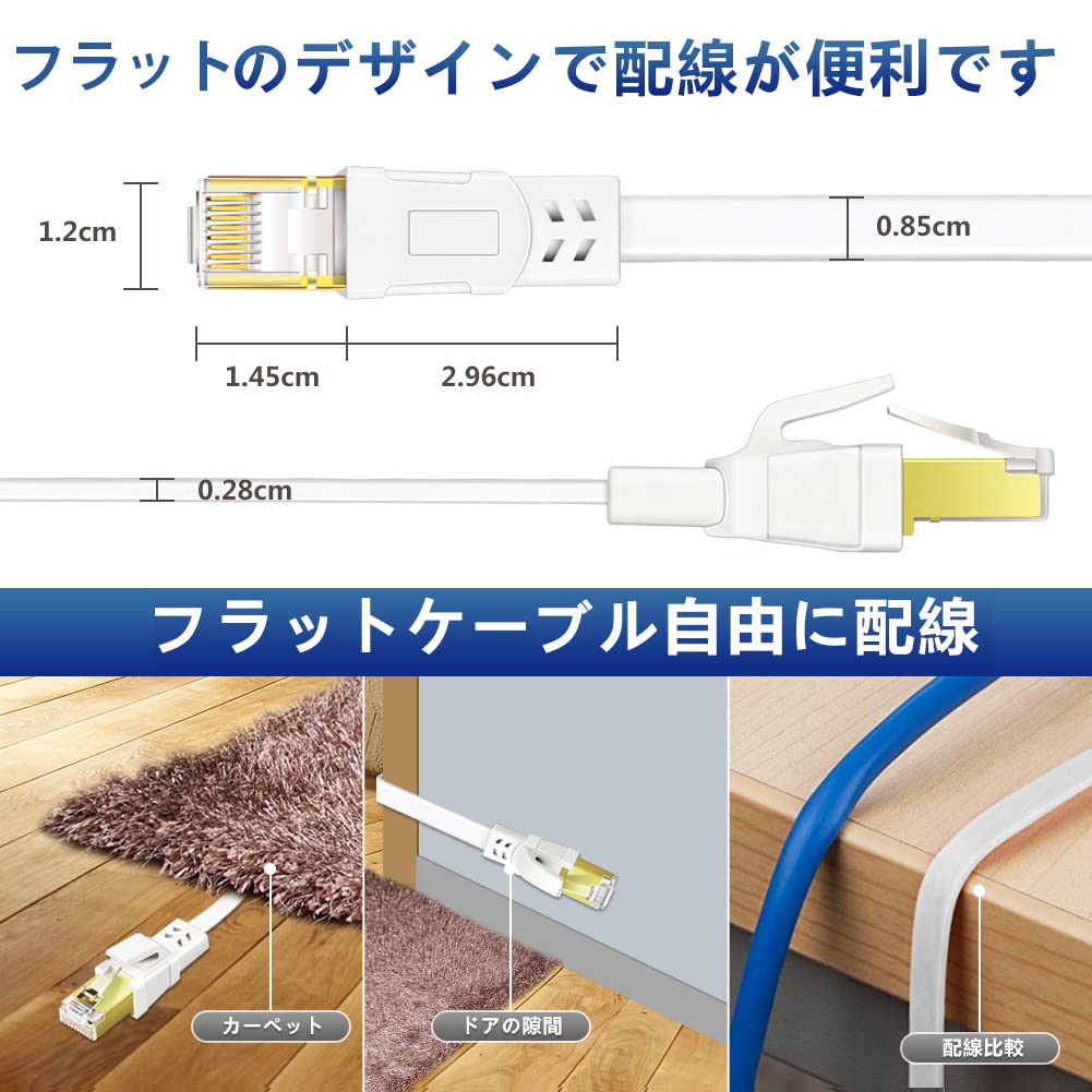 Ankuly CAT8 LANケーブル カテゴリー8 ウルトラフラットケーブル 40Gbps/2000MHz ランケーブル やわらか FTPシールド イーサネットケーブル サーバー 企業様向け 業務用 屋外用 CAT8準拠 (25m-ホワイト)
