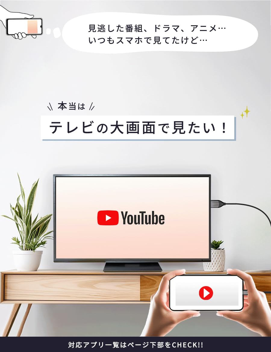 でもスマホの小さな画面だと、時々物足りなく感じることがありませんか?「もっと大きな画面で観れたら」そんな願いもこのミラーリングケーブルで、実は簡単にリビングのテレビでも楽しむことができちゃうんです。