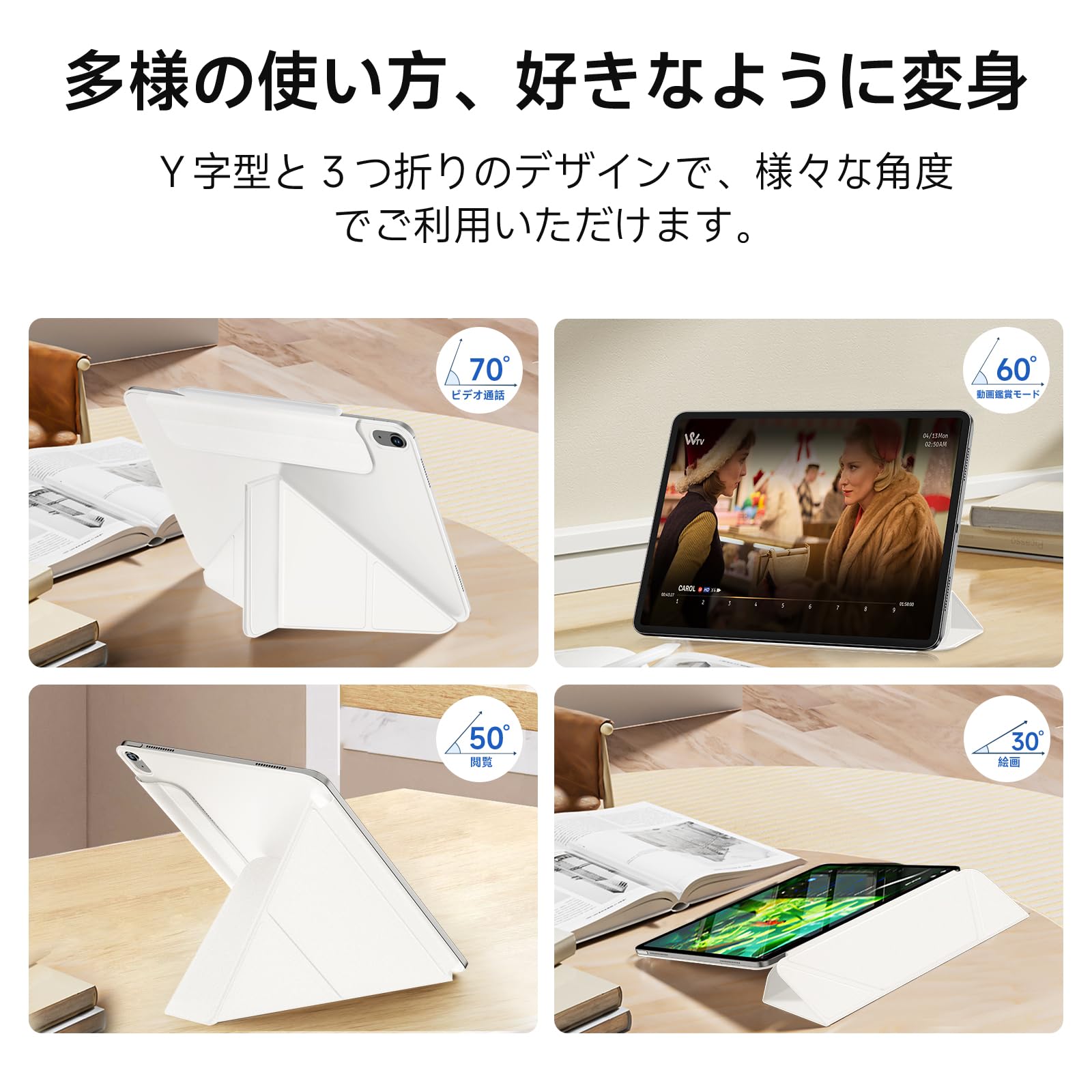 SANDUODD iPad Air 11インチ ケース M2/M3 (2024/2025、第6/7世代)/iPad Air 第5/4世代 (2022/2020)/iPad pro 11インチ ケース(2018)専用 横置&縦置 角度調整可能 三角形スタンド 強力マグネット吸着 Pencil対応 極薄 軽量 オートスリープ/ウェイク対応 (ホワイト)