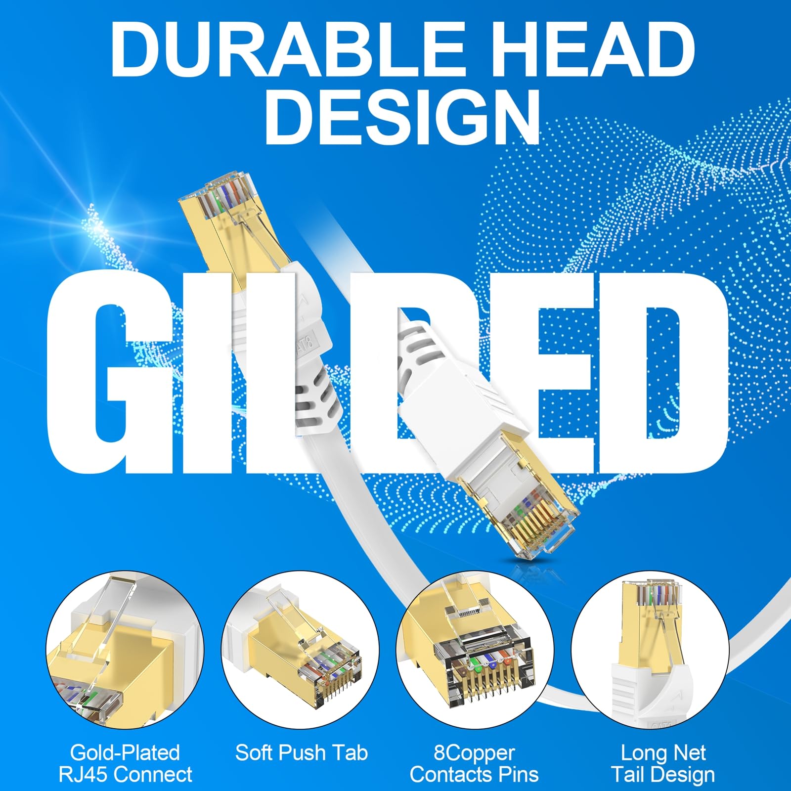 ■ 優れた抗干渉:Cat 8インターネットケーブルは、4つのシールドホイルツイストペア (U/FTP) 純銅コア、金メッキコネクタで設計されています。