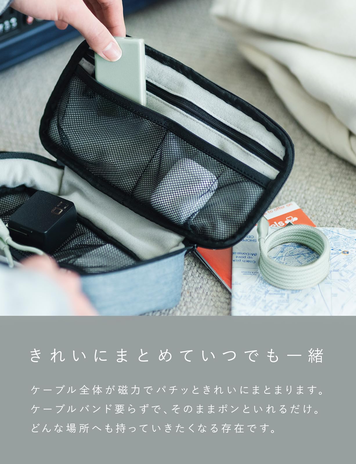 マグネットの力でケーブル自体が引き合うので、ケーブルバンドを使うことなくまとまります。