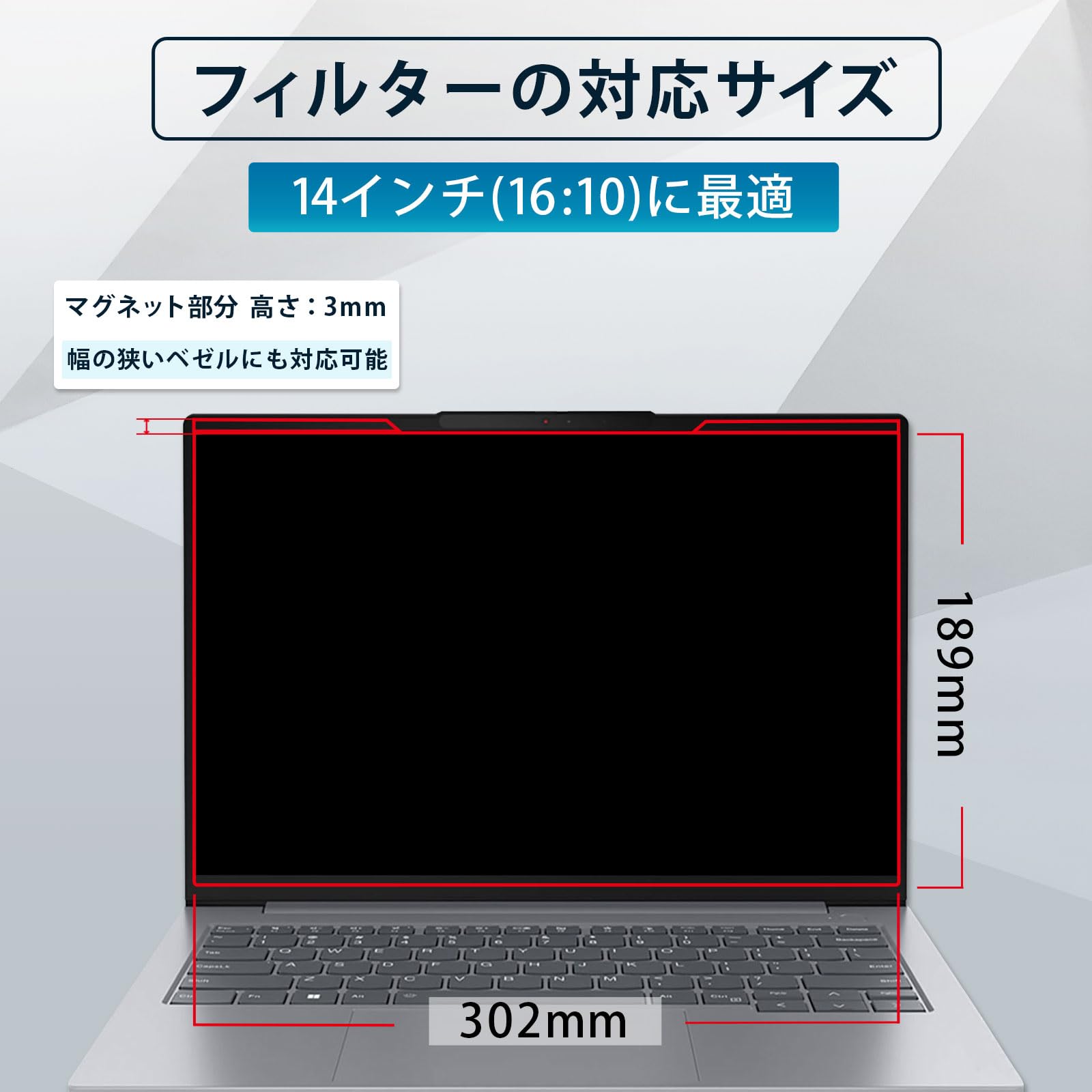 YMYWorld 14インチ 16:10 マグネット 式 覗き見防止 保護フィルム プライバシー フィルター 覗き見防止フィルター 3mm幅 ノートパソコン PC ブルーライトカット 取り外し可能