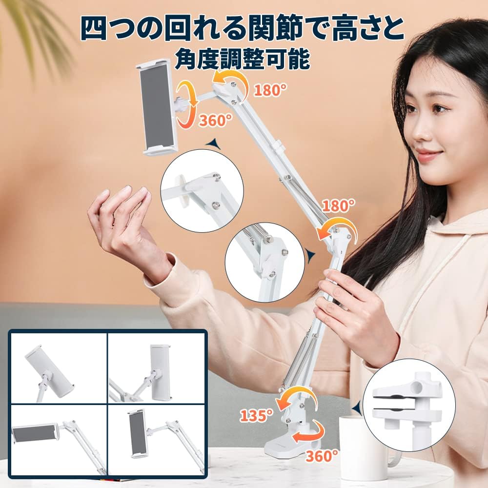 ■ 【四つの回れる関節で角度と高さ調整可能】可動域はとても自由自在!4つの可動軸と360°回転するホルダーにより、高さや角度を細かく調節できて、思った位置に簡単に調節でき、最適な視聴角度と快適さを提供できます。