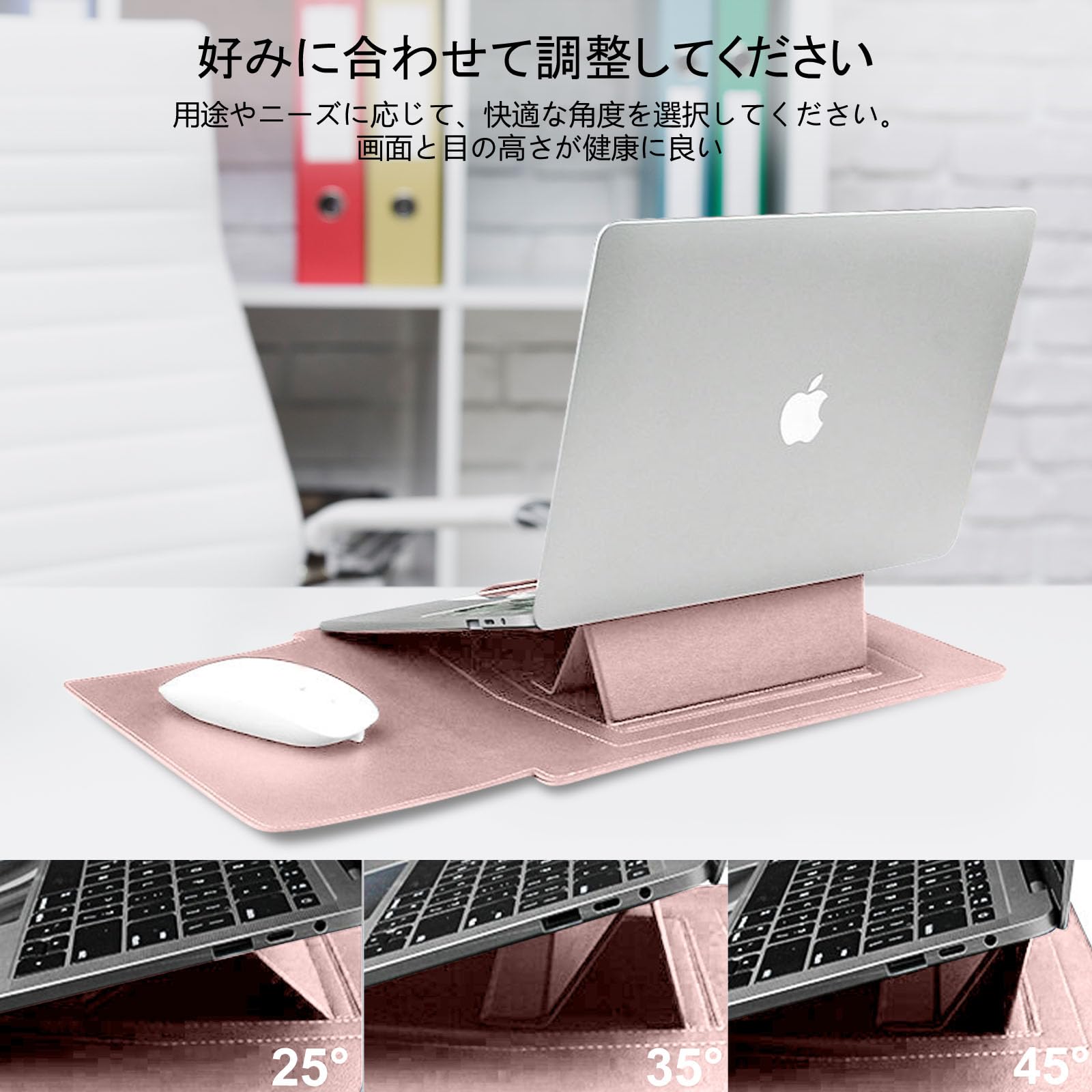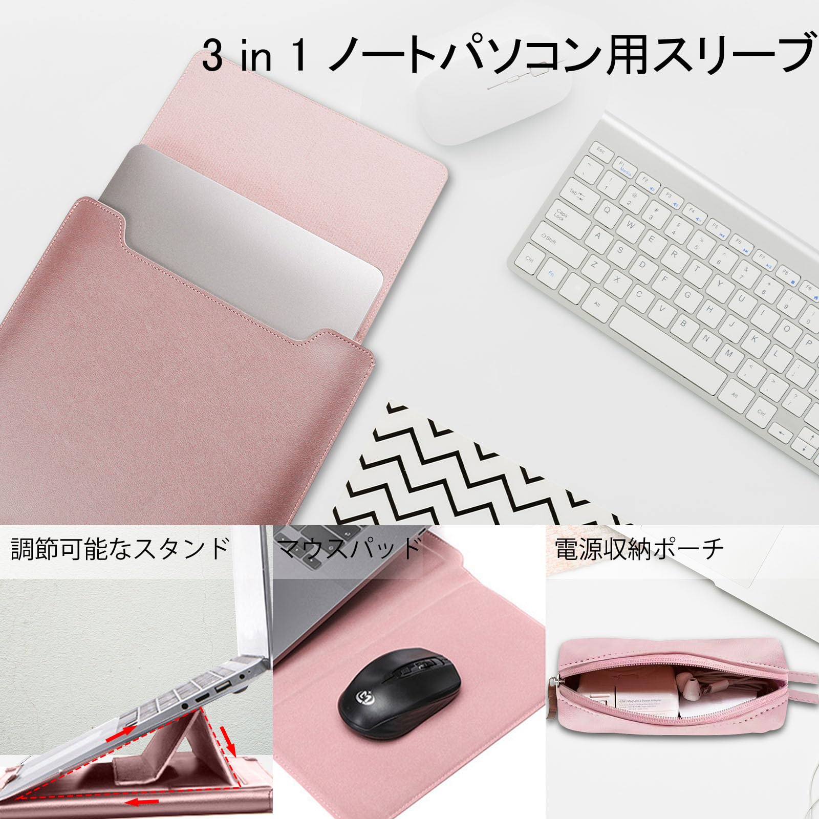 LuFiYa 【3in1】ノートパソコン用スリーブ pcスタンドとマウスパッド付き MacBook Air Pro iPad Apple/Surface Lenovo HP 12/13/13.3/14/15.6/16インチ Laptop 対応 薄型 PU革パソコンスリーブ ノートPCインナーバッグ 耐衝撃 キズ 防止 撥水加工 全面保護 電源収納ポーチ付き(13.3-14インチ | ピンク)