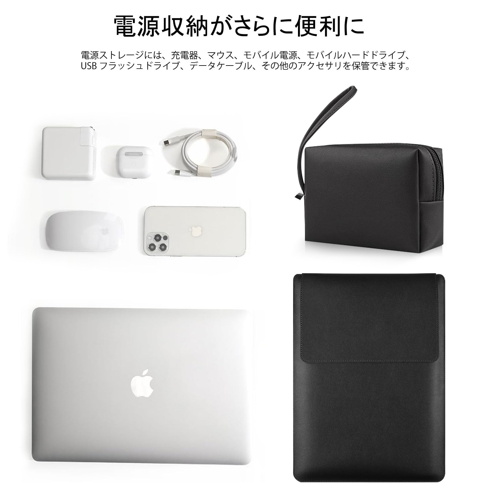 ■ 【同色の電源収納ポーチ付き】高級感マイクロファイバー、PUレザーと柔らかいポリエステル繊維層によって構成されています。