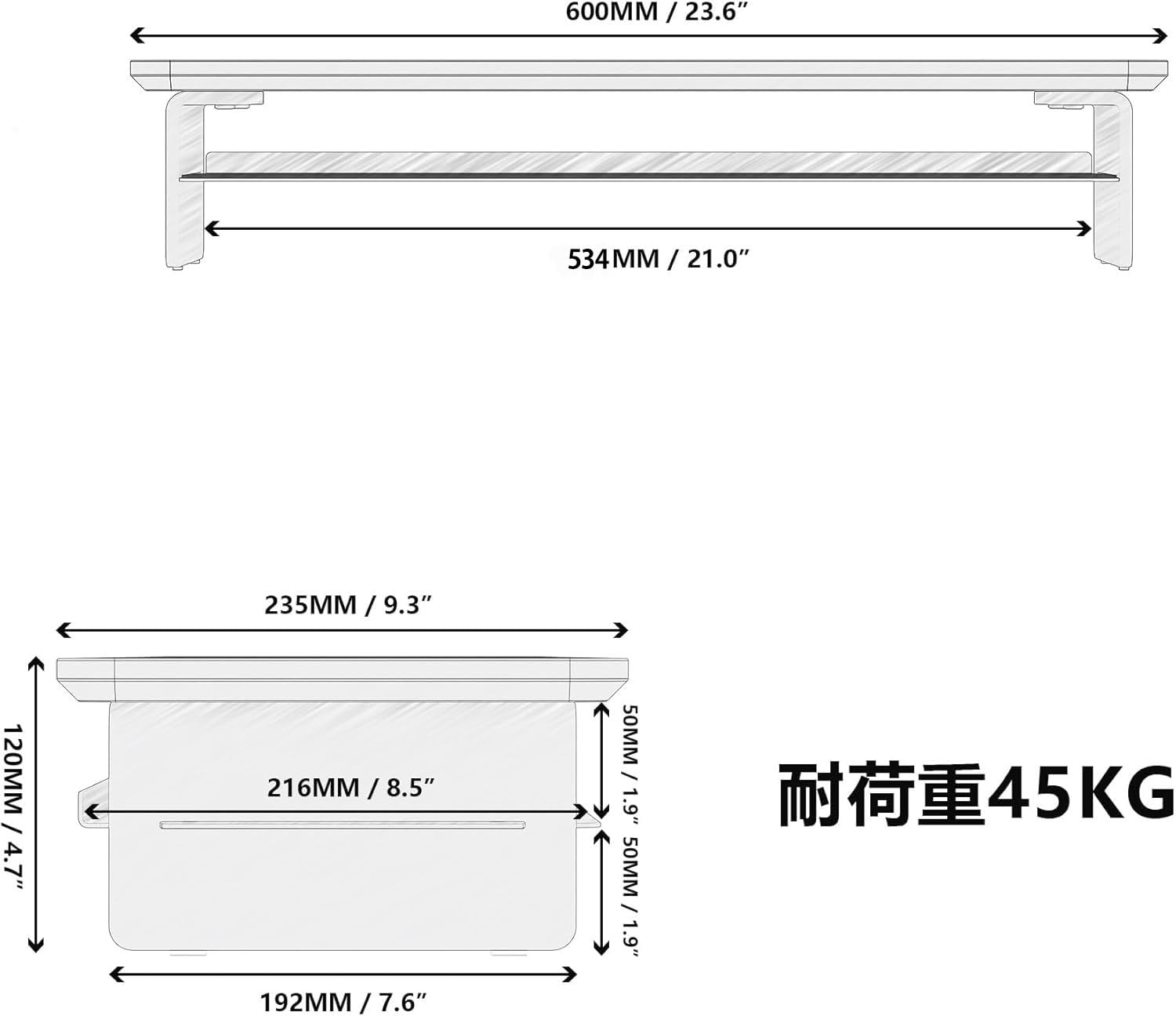 ■ 【商品仕様&12か月品質保証付き】モニター台のサイズ:600*235*120MM,天板の厚さ18MM;脚: アクリル 本体重量:約4.2kg 最大耐荷重:45kg 組み立て式。