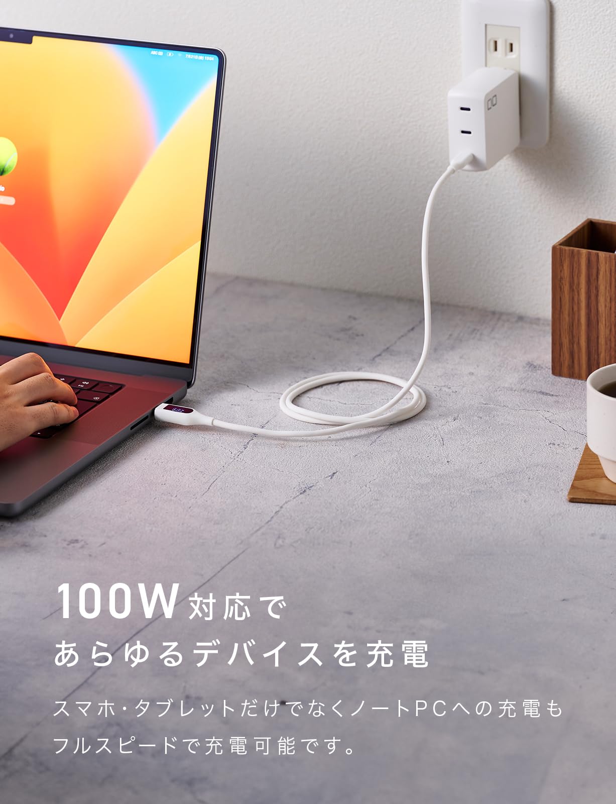 ■ 【PD 急速充電 100W 対応で様々な機器を安定して充電】100Wの大出力やUSB-PDにも対応するケーブルを採用しているので、スマホだけではなく、ノートPC (MacBook air M3 / Surface / Lenovo など)もらくらく充電可能。