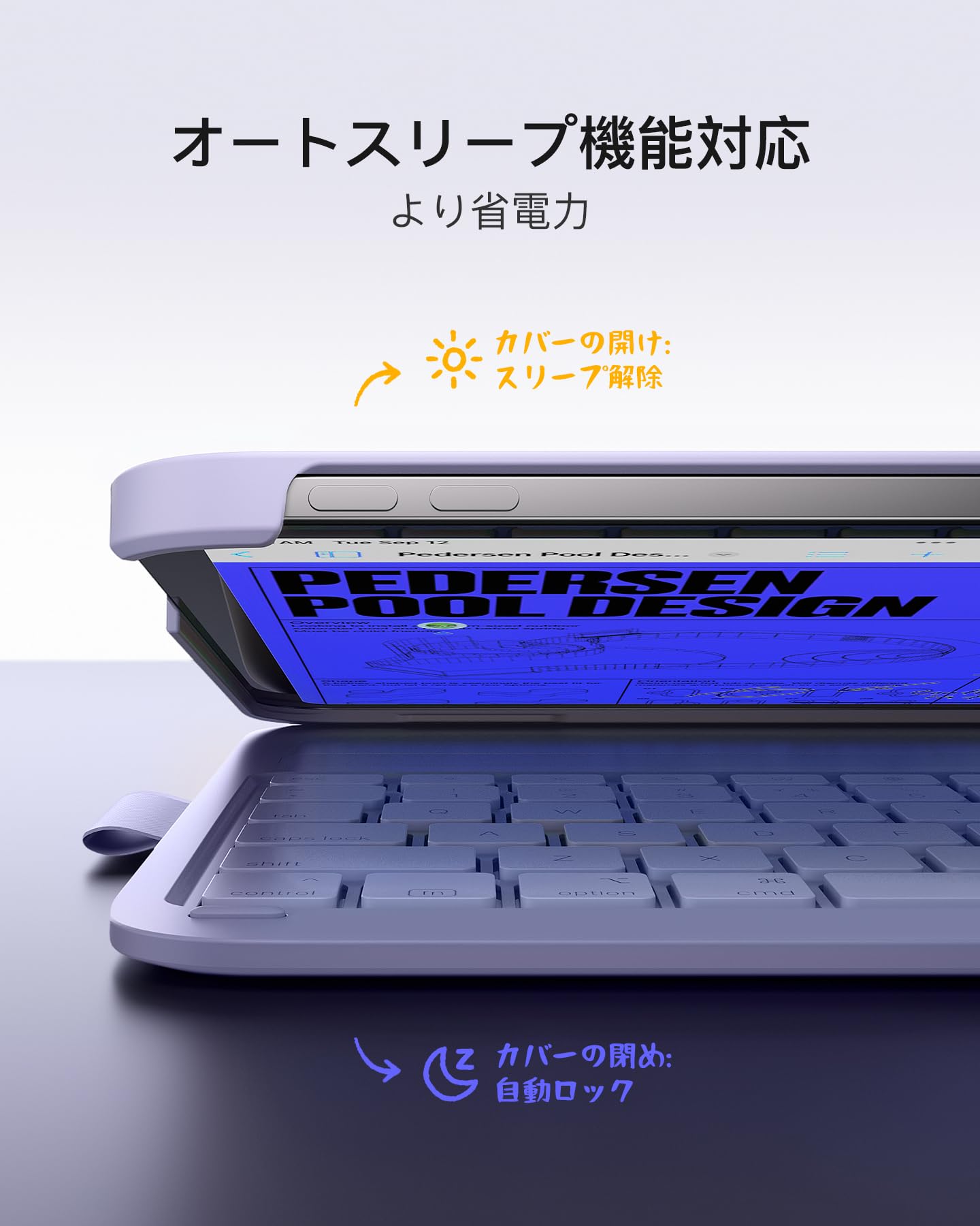 iPadを持ち上げるとキーボードの電源が自動的にオフになります。