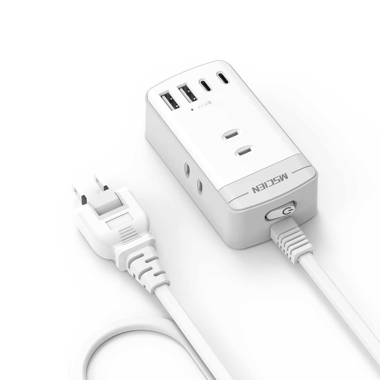 Mscien 延長コード 5m スイッチ付き 電源タップ 3個AC差込口 2個USB-C 2個USB-A コンセント 分岐 テーブルタップ 雷ガード付き 旅行 出張 壁掛け スイングプラグ