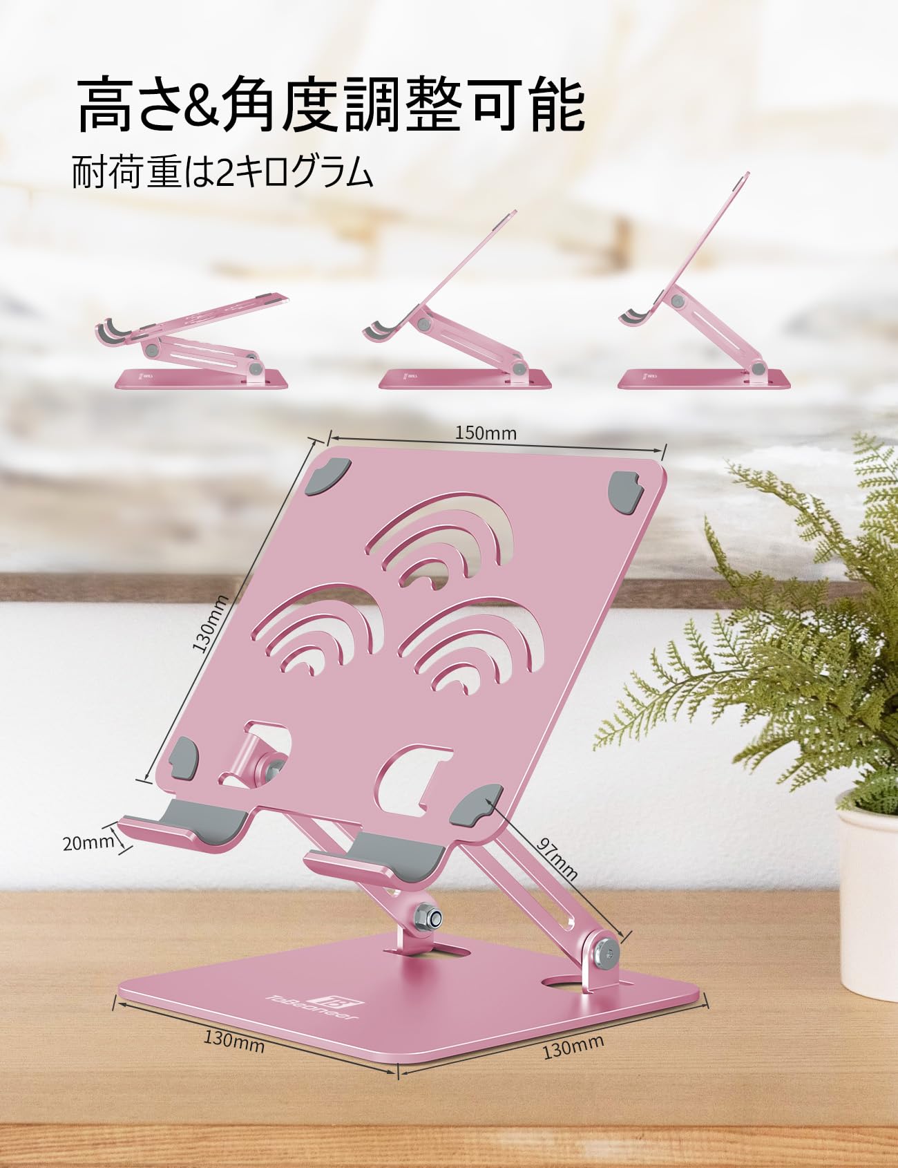 ipadスタンド - タブレット スタンド - 絵描きホルダー - ToBeoneer(ツビワ) - アイパッド 高さ角度調整可能 持ち運び便利 折りたたみ式 イラスト 置き台 卓上 アルミ製 軽量 充電stand 立て 在宅ワーク ZOOM 会議 ipad pro/mini/air/Kindleなど4-12.9インチに対応 (ピンク, 標準版)
