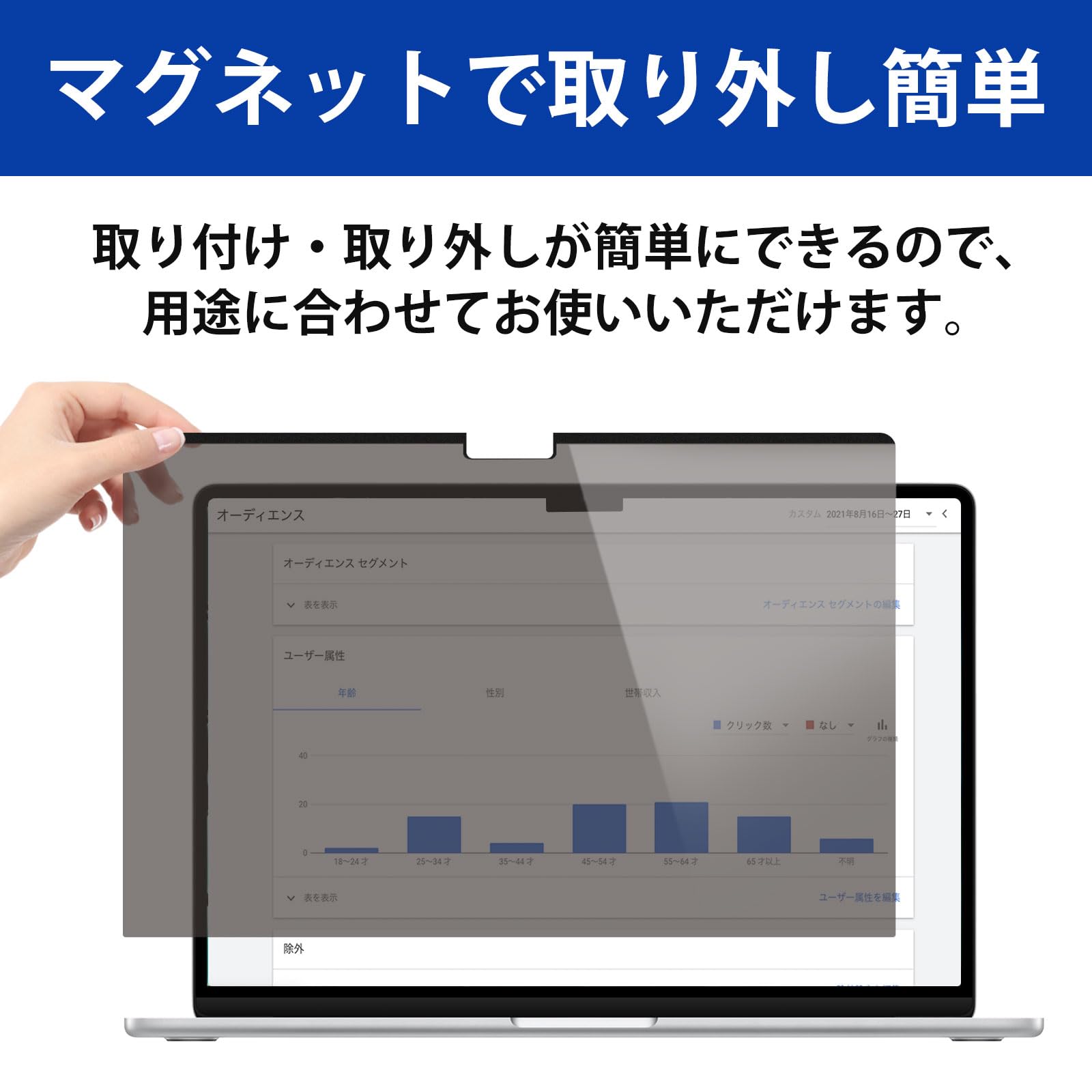 MacBook Air 15 2025 M4 /M3/M2 用 のぞき見防止 マグネット式 プライバシーフィルター 覗き見防止 フィルム 反射防止 ブルーライトカット 傷防止 両面使用