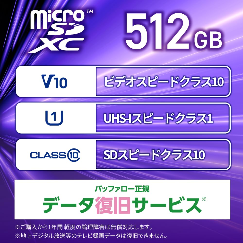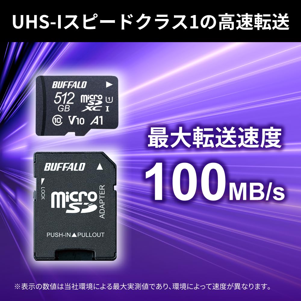 バッファロー microSD 512GB 100MB/s UHS-1 U1 microSDXC【 Nintendo Switch 対応 】V10 A1 IPX7 Full HD RMSD-512U11HA/N