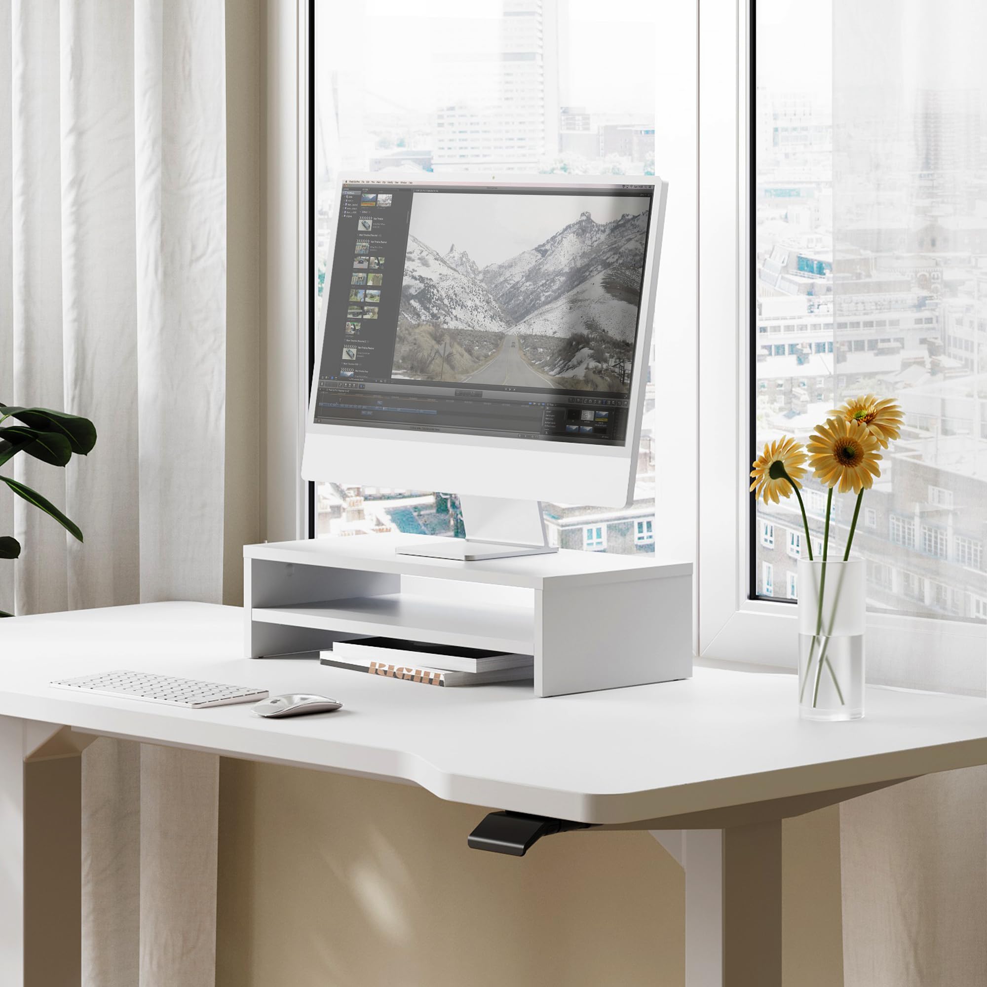 Fitueyes モニター台 パソコン台 モニタースタンド 机上台54cm横幅 木製天板 二段式PC台卓上 パソコンスタンド デスクトップ用 机上 机上ラック 机上台 pcモニター台 パソコンラック 卓上 収納 整理整頓ホワイトDT205405WW