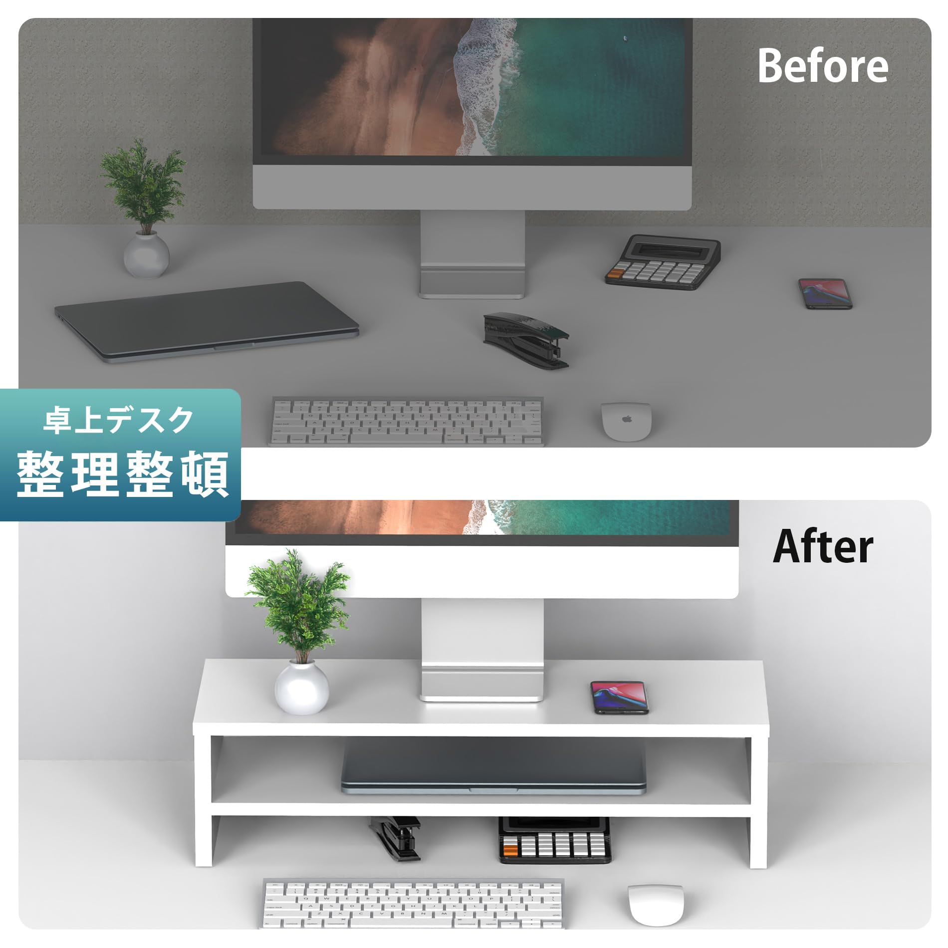 ■ 【デスク周りにスッキリに】卓上モニター台は2段式で物事ごとに分類に収納できます。