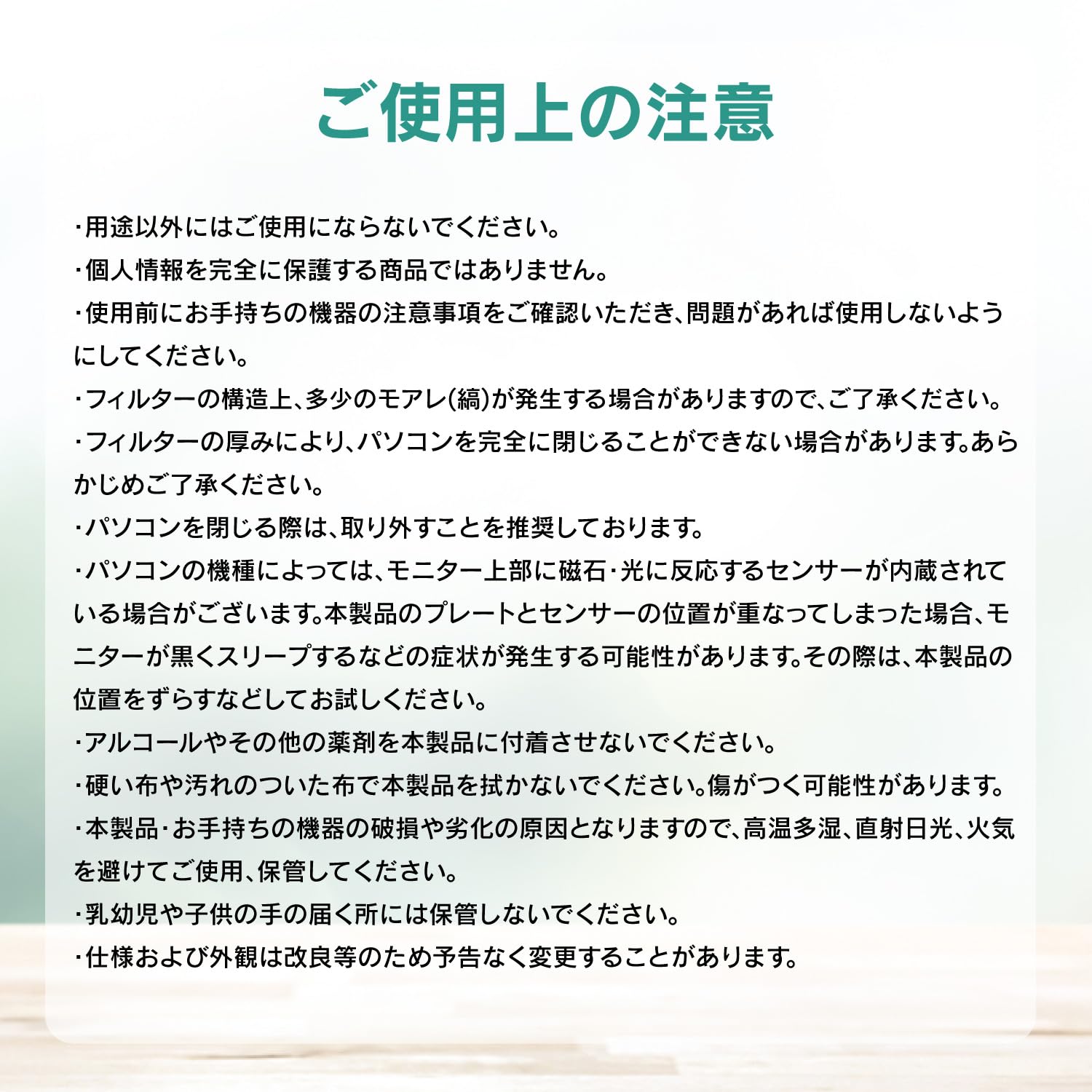 ③フィルターを使用しない時は付属の収納用クリアケースにて保管してください。