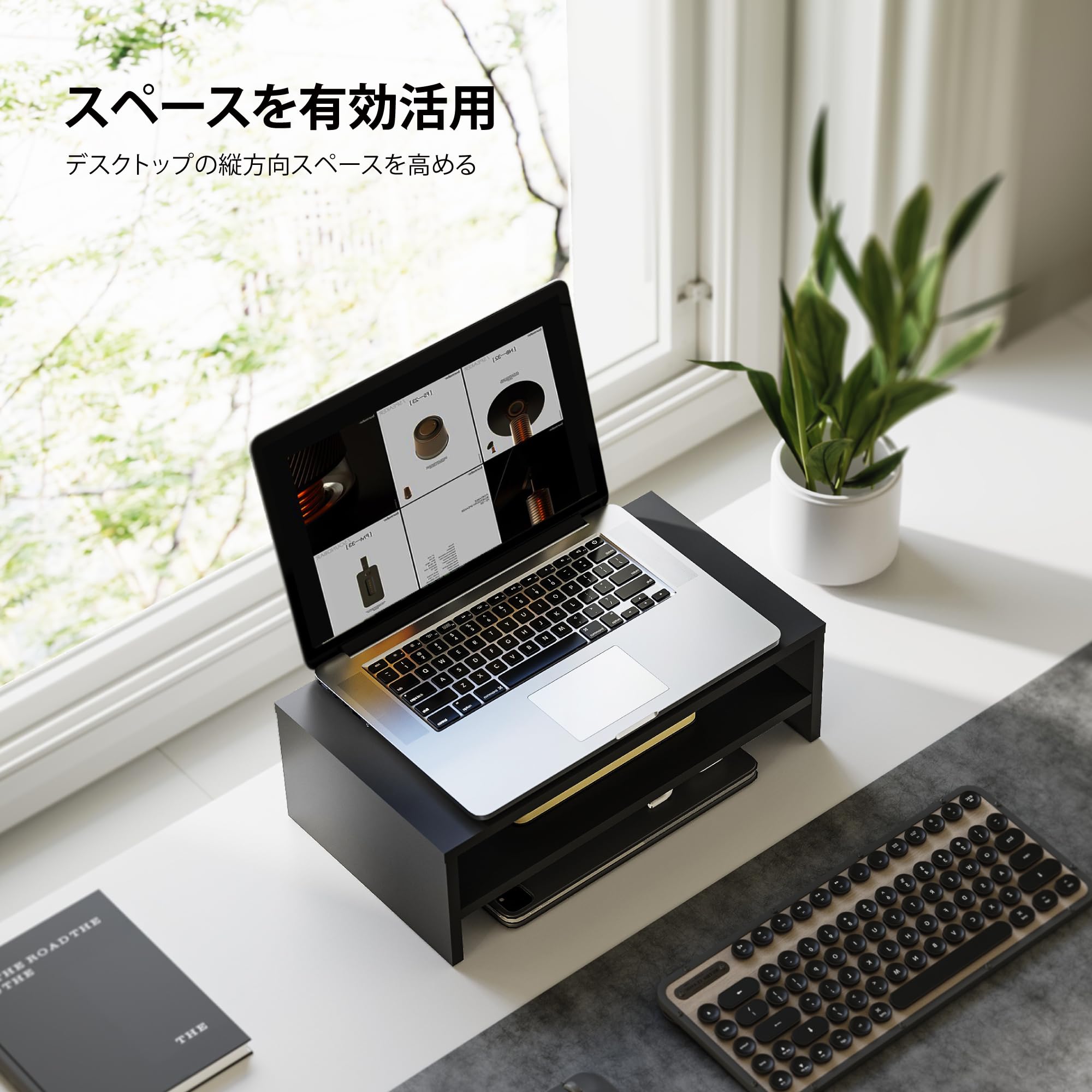 Fitueyes モニター台 モニタースタンド 机上台 PC台 42.5cm横幅 木製天板 二段式PC台卓上 デスクトップ用 机上 机上ラック 机上台 pcモニター台 パソコンラック 卓上 収納 整理整頓ブラックDT204201WB