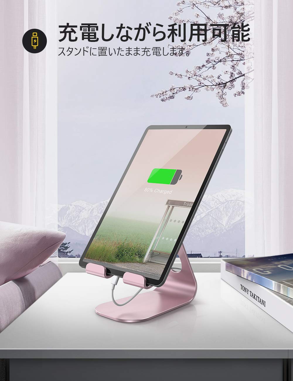 タブレット スタンド アルミ ホルダー 角度調整可能 Lomicall stand : 卓上縦置きスタンド タブレット置き台 デスク台 設置 aluminium テレワーク 在宅 ワーク Zoom 会議 タブレット対応(4~13'') ipad 10 第十世代 ipad9 アイパッド Air mini Pro 第六世代 S7 S8 Note 6 対応 - ローズゴールド