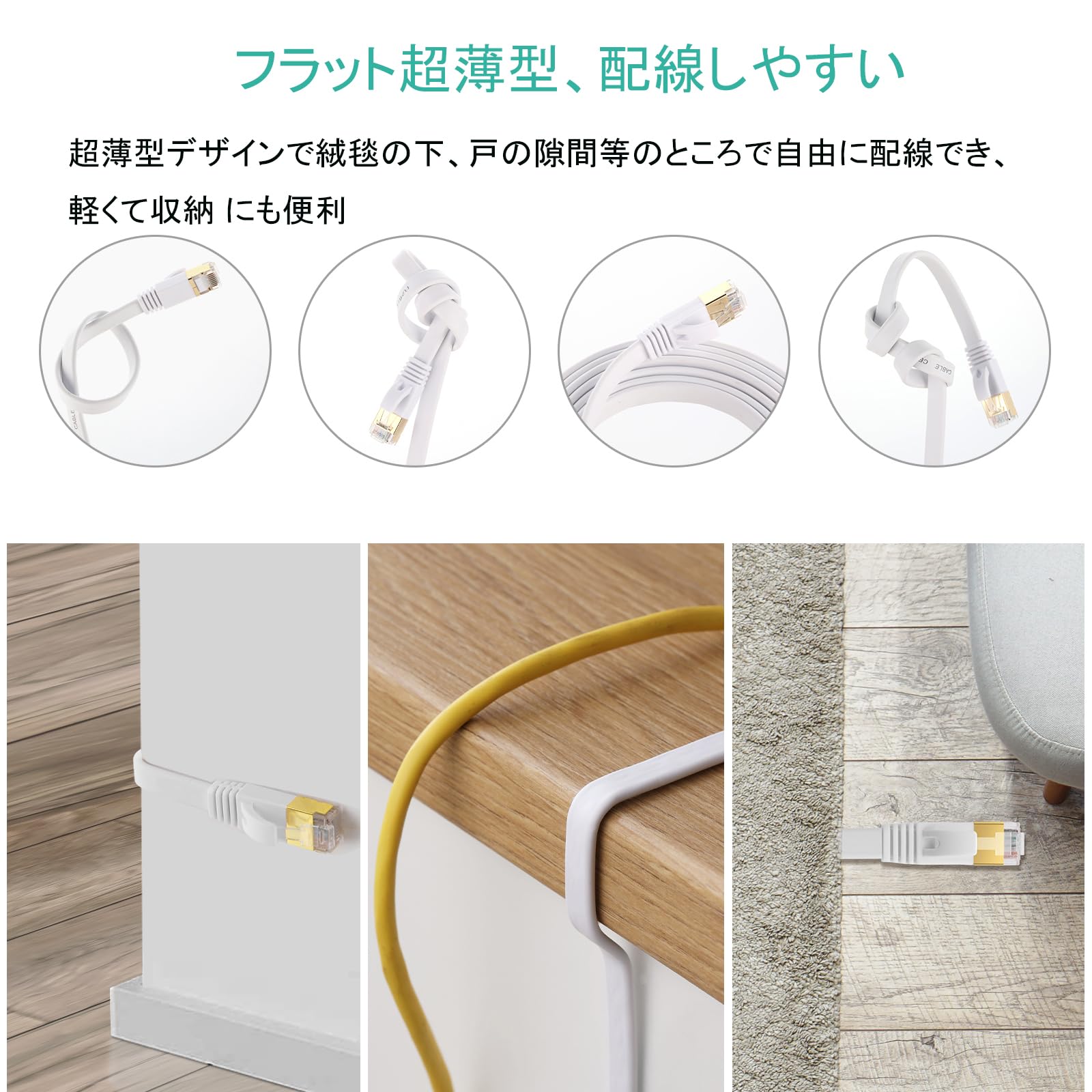 ■ 【フラット超薄型】薄さ2.1mmの超フラットで、カーペットの下や、細い隙間にスッキリ配線できます。