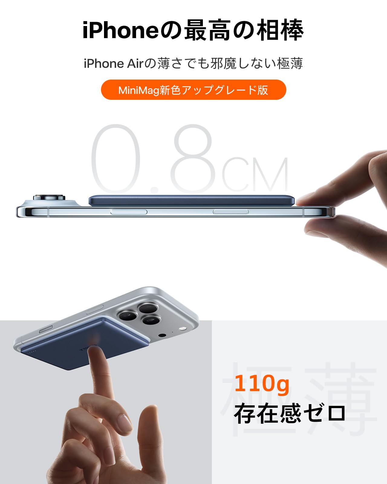 重さわずか111gで、iPhoneにくっつけても違和感ゼロ。