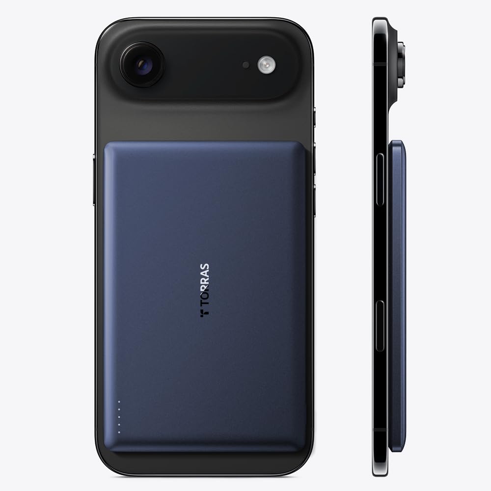 TORRAS MiniMag アップグレード版 モバイル バッテリー 超薄型 MagSafe対応 マグネット式 ワイヤレス充電 5000mAh 軽量 小型 マグセーフ 充電器 コンパクト iPhone 17 /16 / 15 / 14 / 13 / 12 シリーズ専用 CCC認証済 機内持ち込み可(ディープブルー)