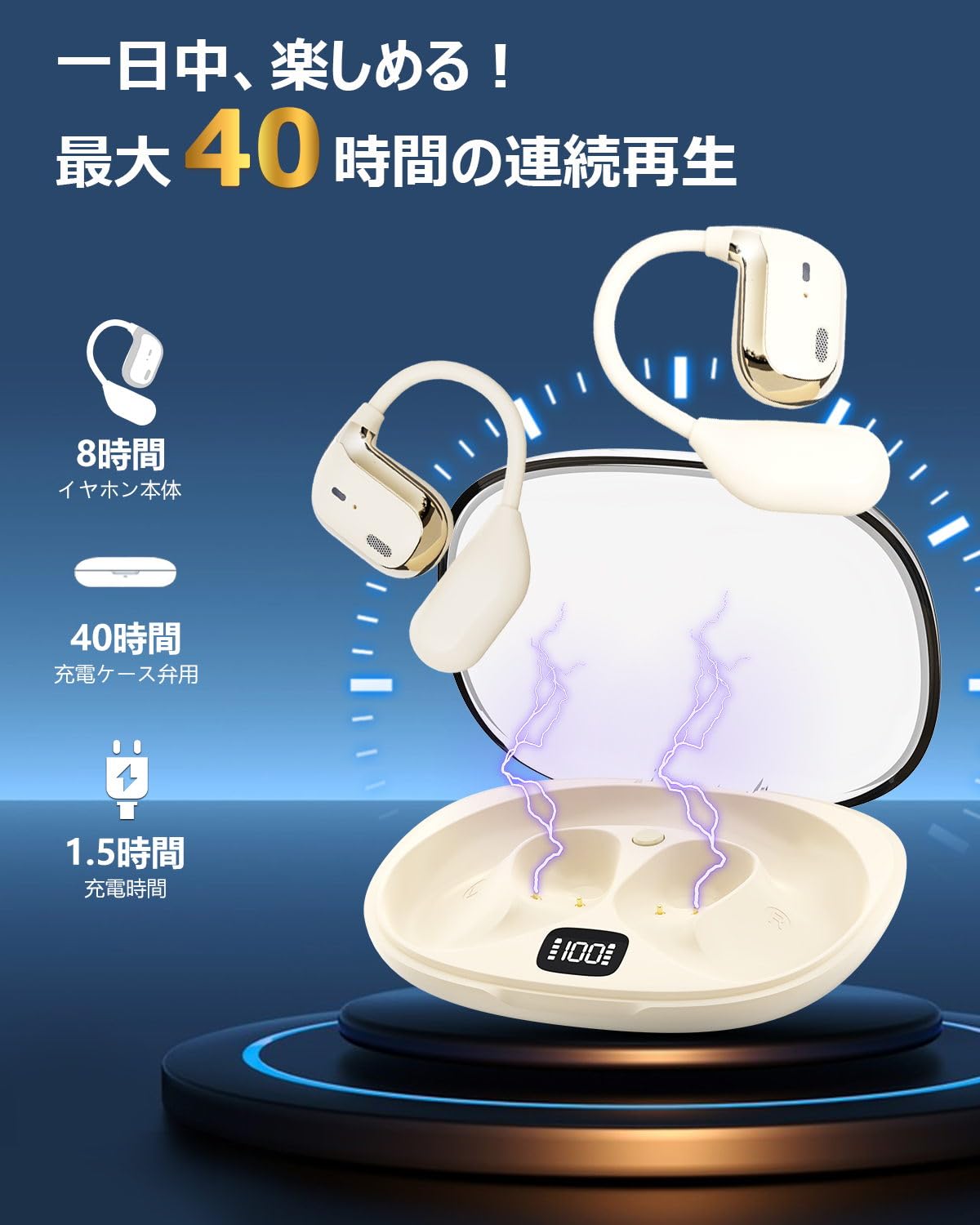 充電ケースを組み合わせれば最大約40時間ほど音楽再生を楽しめます。