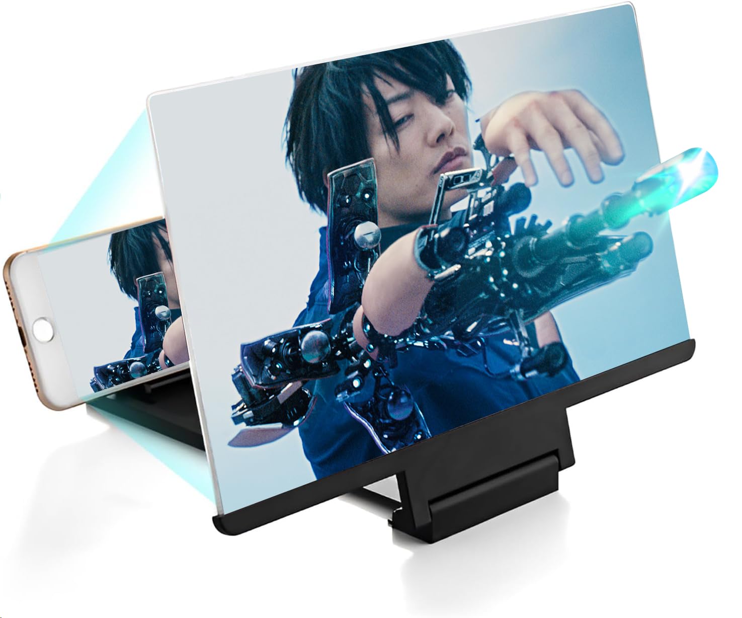 MUDKAGU スクリーンアンプ 10インチ 正規品 スタンド ノウボーダー 拡大鏡 スマホ拡大鏡ホルダー HD 5倍 3D 携帯 スクリーン拡大器 360 自由回転 枠無し 疲労軽減 スマホ画面拡大 軽量 スタンド折り畳み式 多機能調節可能 (ブラック)