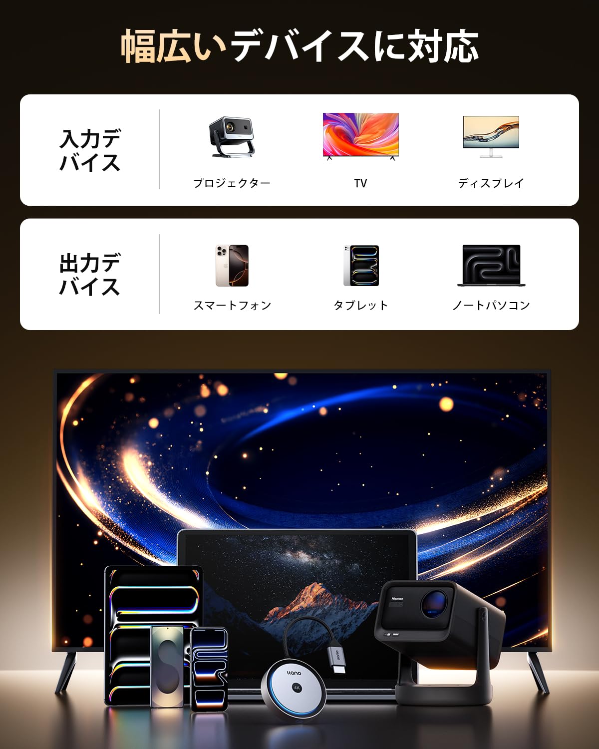 簡単に接続でき、いつでもどこでも4K高精細体験をお楽しみいただけます。