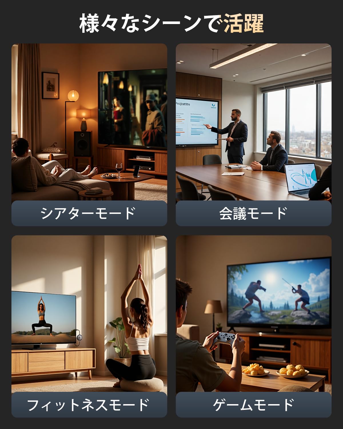 家庭でのエンターテインメントやビジネスプレゼンテーションでも、映画館のような視覚体験をお楽しみいただけます。