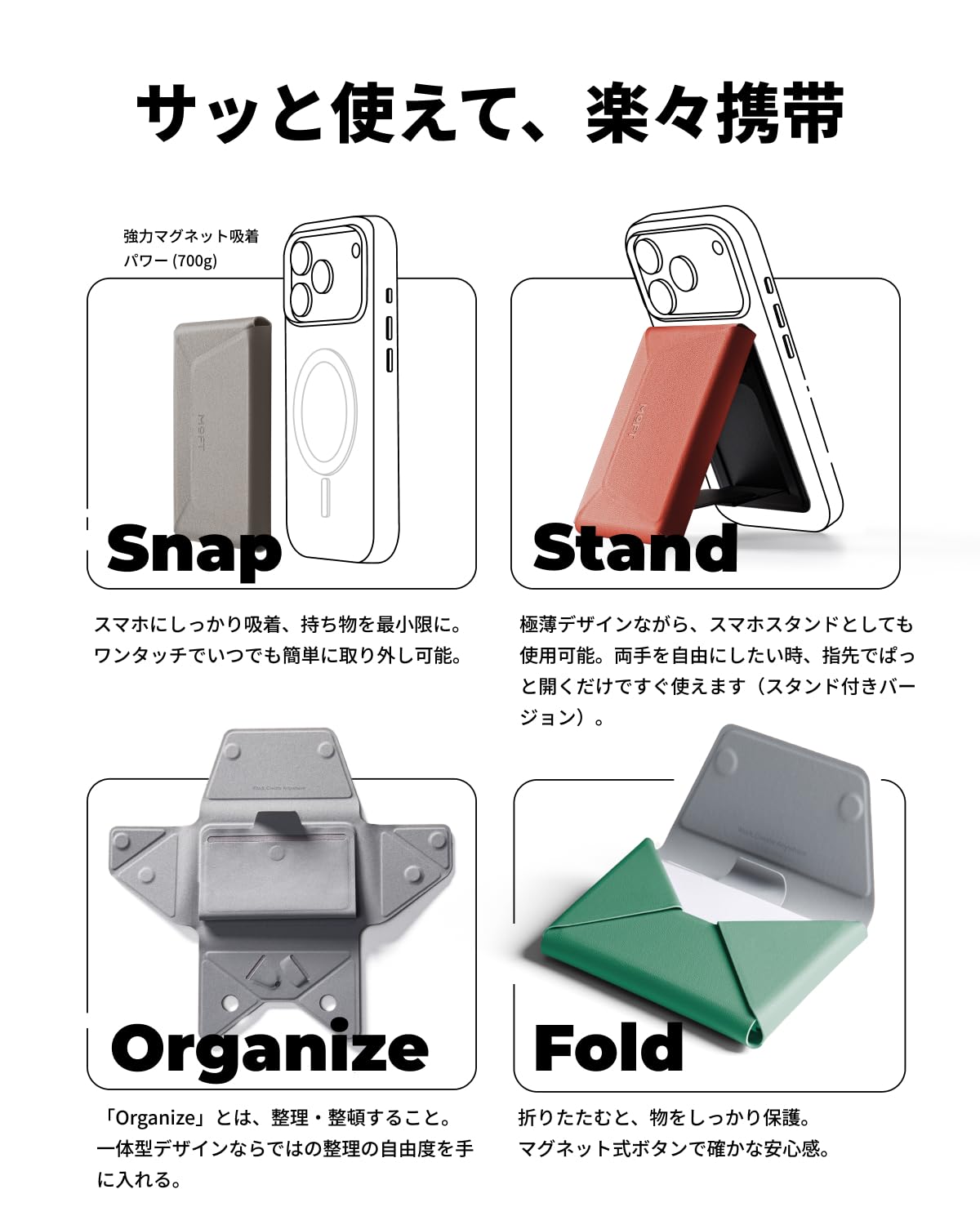 MOFT【公式直営店】多機能カードケース&スタンド MagSafe対応 スマホスタンド 財布 カードケース 折りたたみ式 大容量 最大8枚カード·SIMカード収納 名刺入れ コンパクト 薄型 軽量 MOVAS™耐久素材 多機能 全機種対応 外出 旅行 ビジネス 日常に便利 ジェットブラック (スタンド付き)