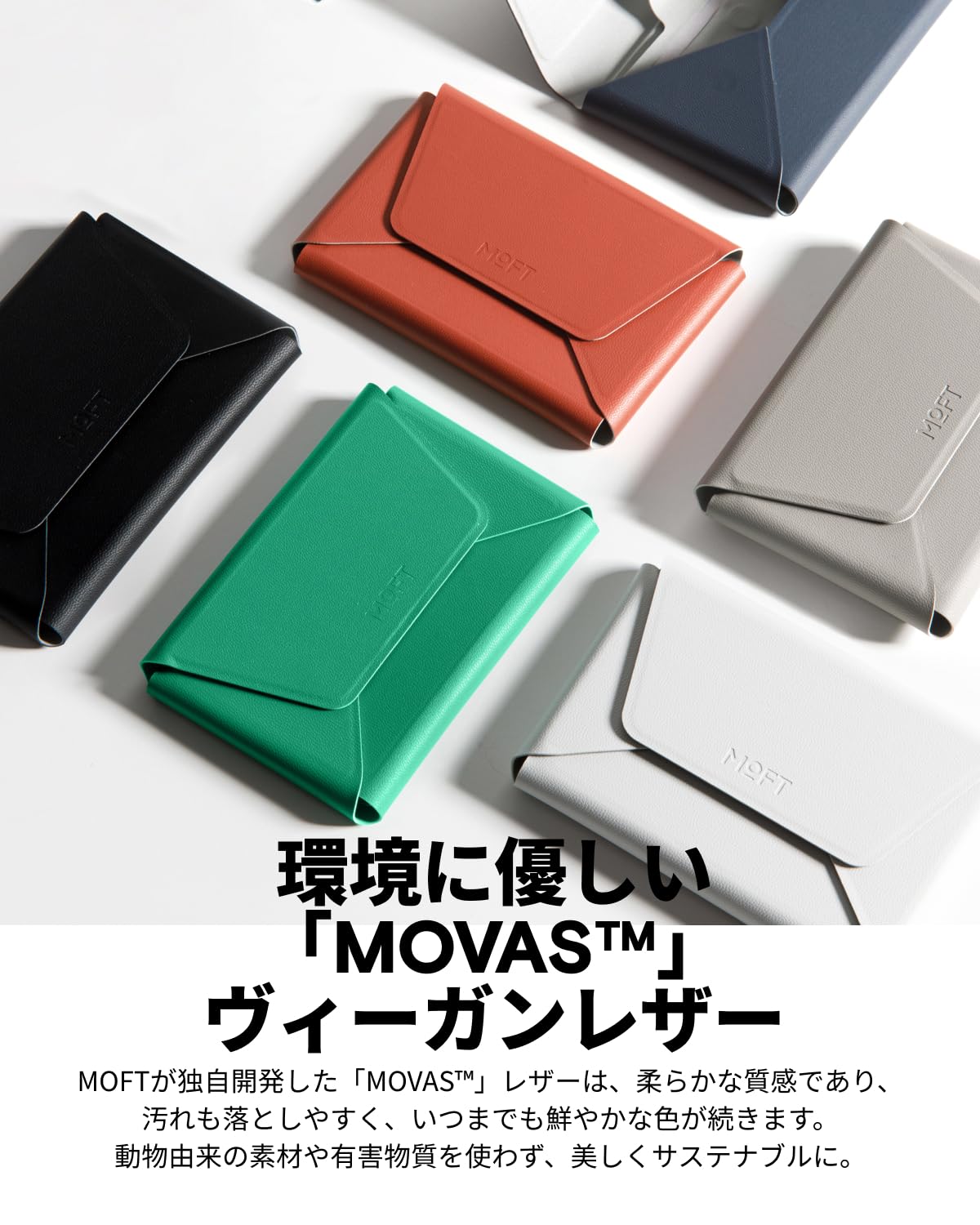 ■ 【上質MOVASレザー、中性的で洗練されたデザイン】 MOFT独自開発のMOVASヴィーガンレザーを採用。