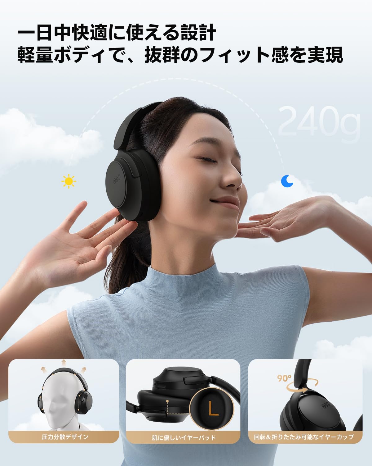 ■ 【快適な装着感&マルチポイント接続対応】頭を優しく包み込むソフトなヘッドパッドと、肌触りの良いイヤーパッドを採用し、長時間のリスニングでも快適さをキープ。