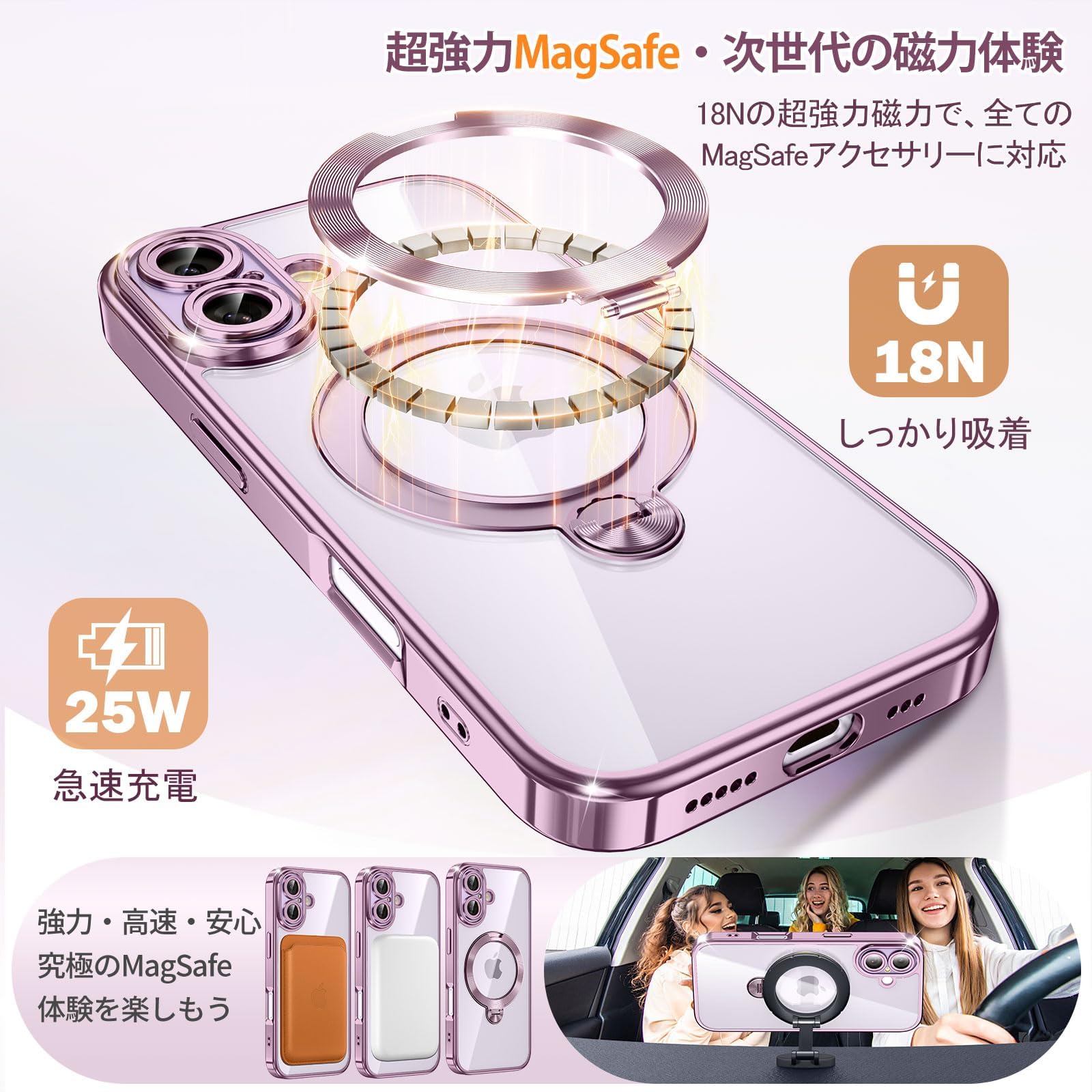 ■ 【MagSafeアクセサリー対応・磁力アップグレード】強力なN52磁石を搭載しており、磁石吸着力は従来より10倍高め、ケースを装着したまま高速ワイヤレス充電が可能です、充電時の熱を周囲に発散して。