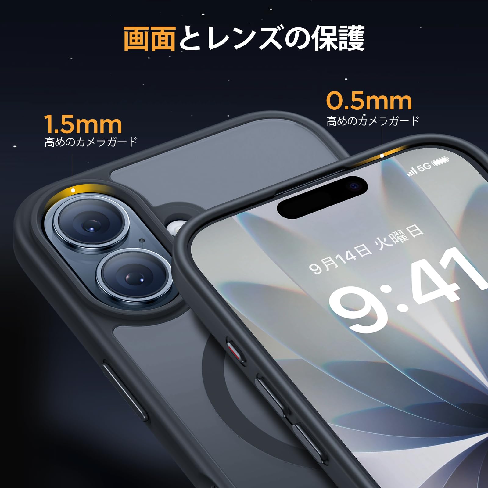 1.5 mmの高リムがレンズを守る,0.5 mmの高さ設計で、画面を守りながら、強化ガラスフィルムの浮き上がりも安心。