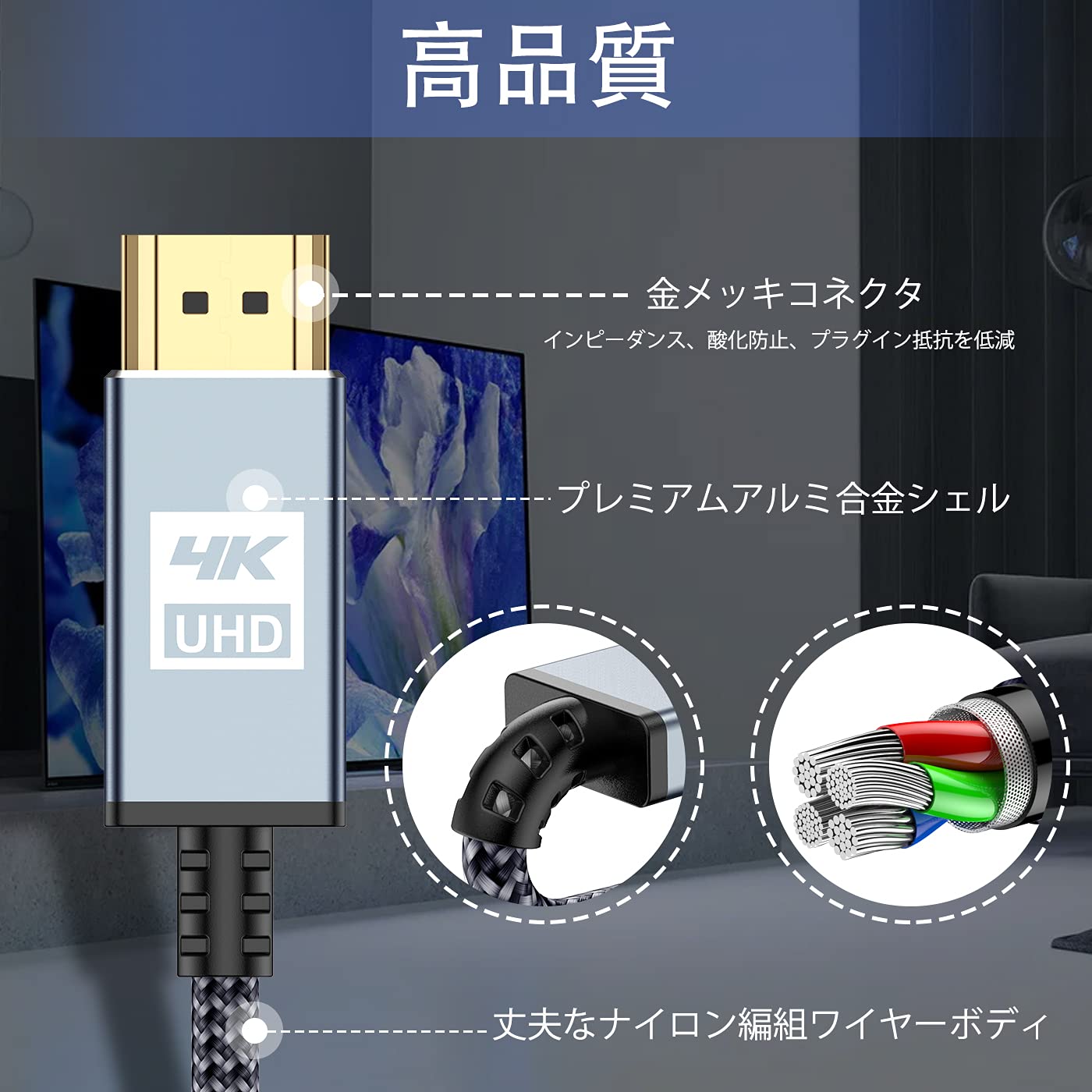 4K HDMI ケーブル 10m【ハイスピード アップグレード版】 HDMI 2.0規格HDMI Cable 4K 60Hz 対応 3840p/2160p UHD 3D HDR 18Gbps 高速イーサネット ARC hdmi ケーブル - 対応 パソコンの画面をテレビに映す Apple TV,PS5/PS4/PS3, PCモニター など適用 (グレー)