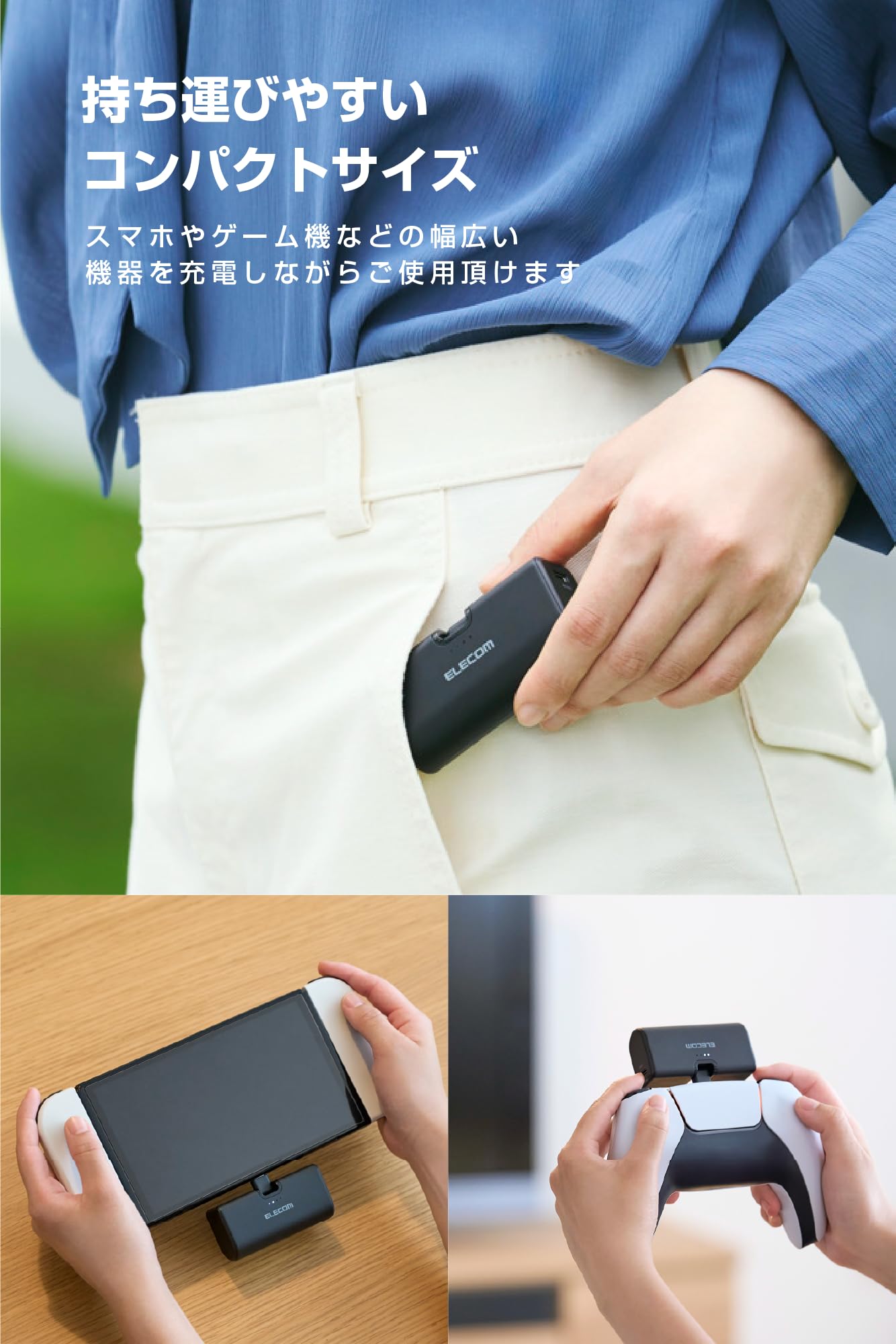 ■ AndroidやUSB Type-Cポート搭載のiPhoneなどのスマートフォン・タブレットに、一体型コネクターを直接挿して充電できるモバイルバッテリーです。